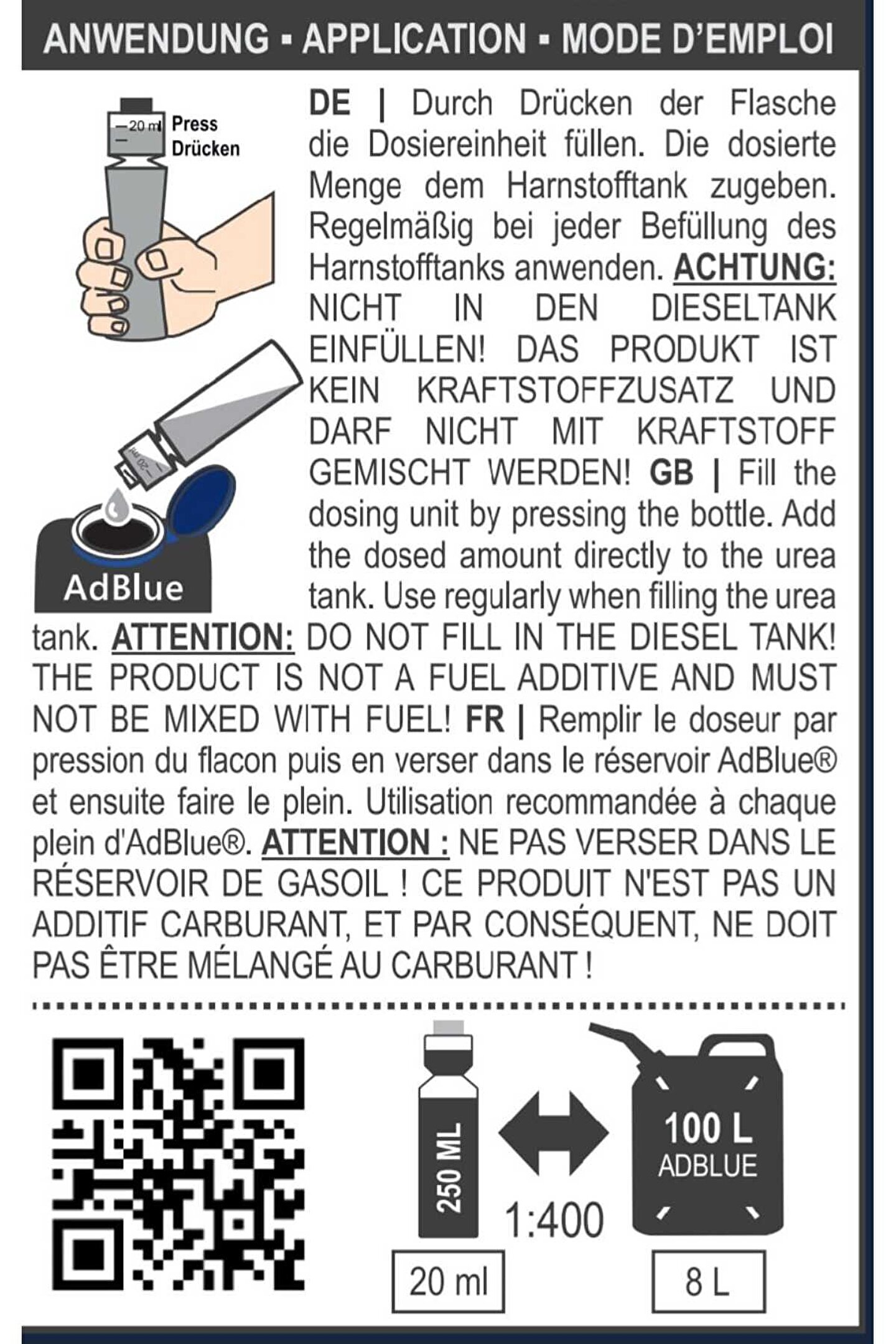 Özellikle formüle edilmiş bu ürün AdBlueenjektörünü ve SCR-Katalizatörünü temizler ve korur. İşlev kaybı veya motorarızaları böylece engellenmiş olur.