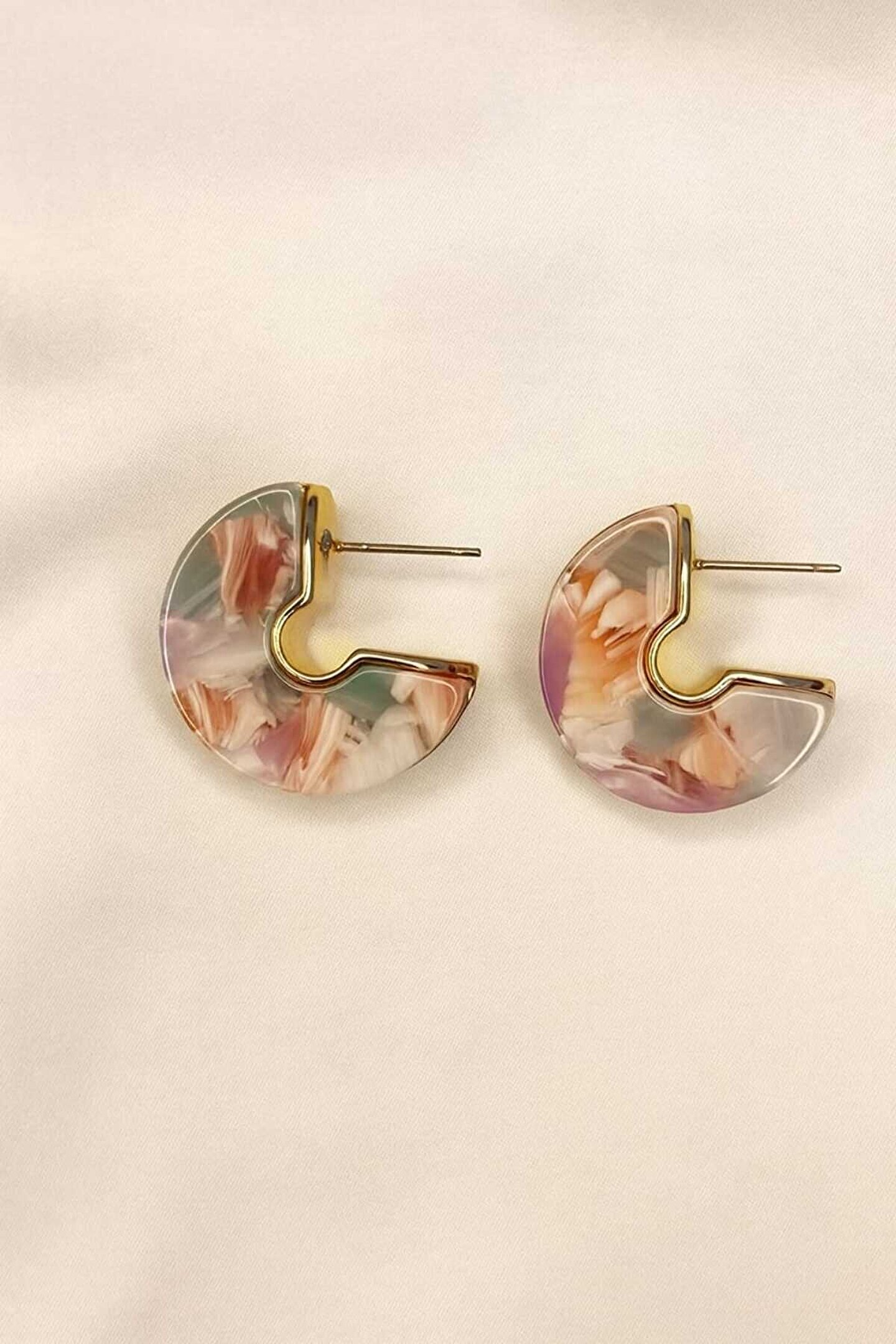 La Florine Pirinç Kaplama Çelik Yarım Halka Küpe