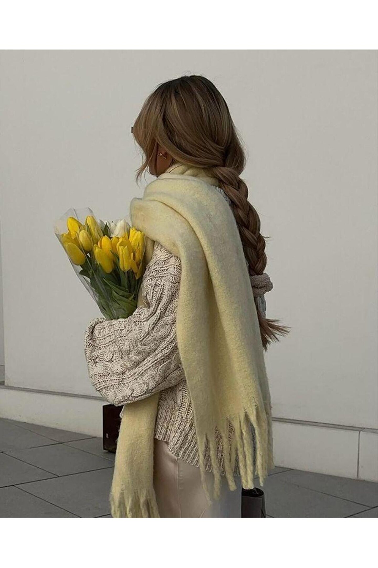 La Florine Puffy Yumuşak Dokulu Soft Atkı Omuz Şalı Soft Sarı