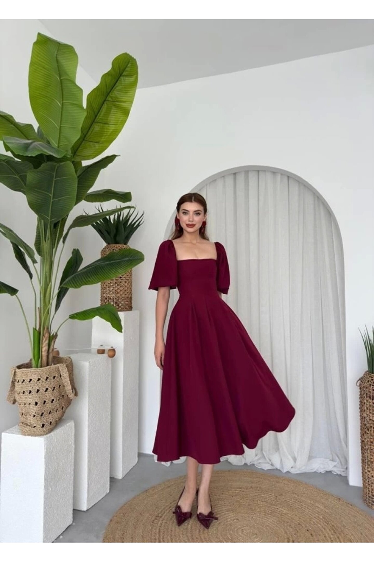 Jama Midi Boy Elbise Modelin Ölçüleri: Boy:165, Kg:55, Göğüs:90, Bel:72, Kalça: 100 Modelin Üzerindeki Ürün M/38 Bedendir