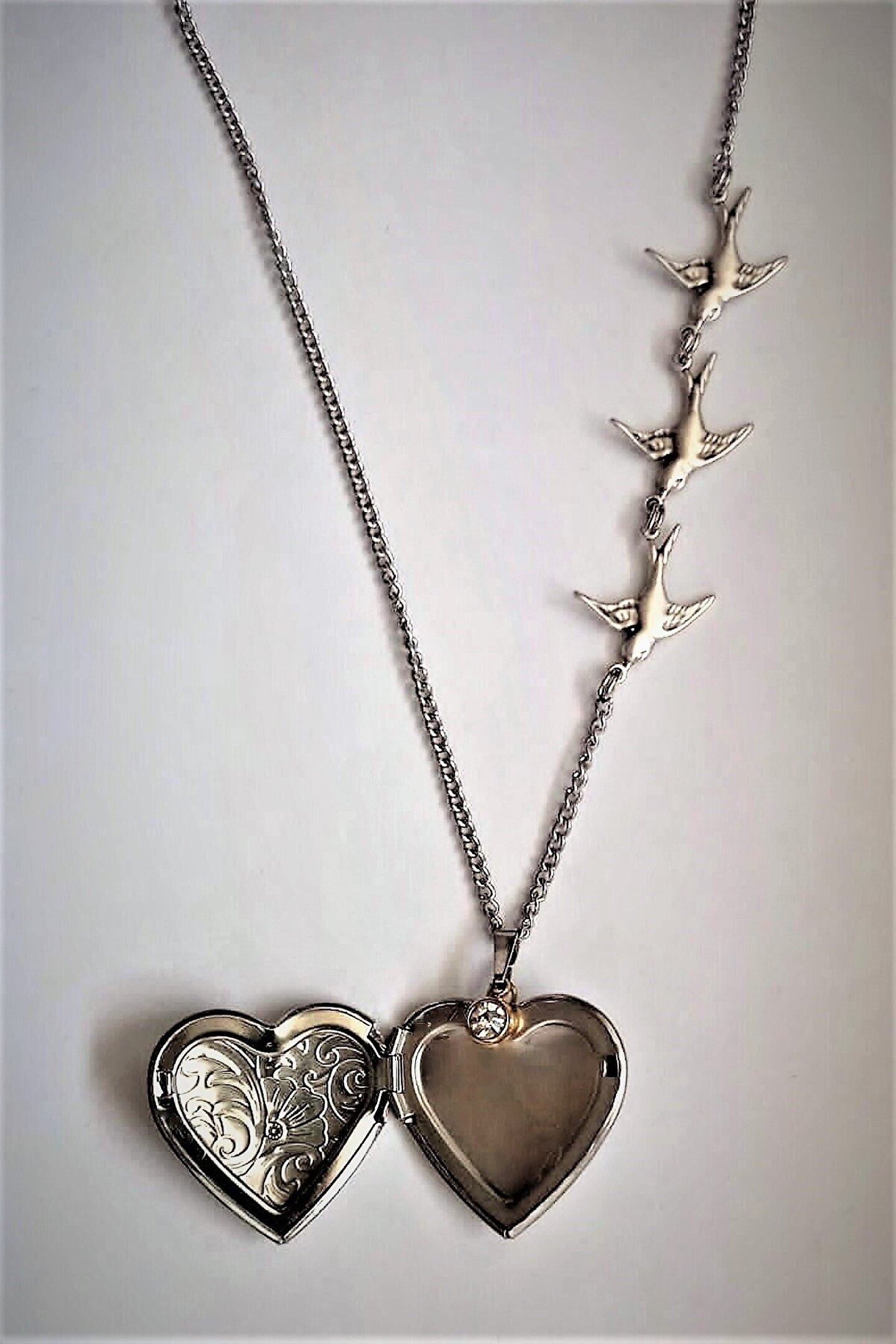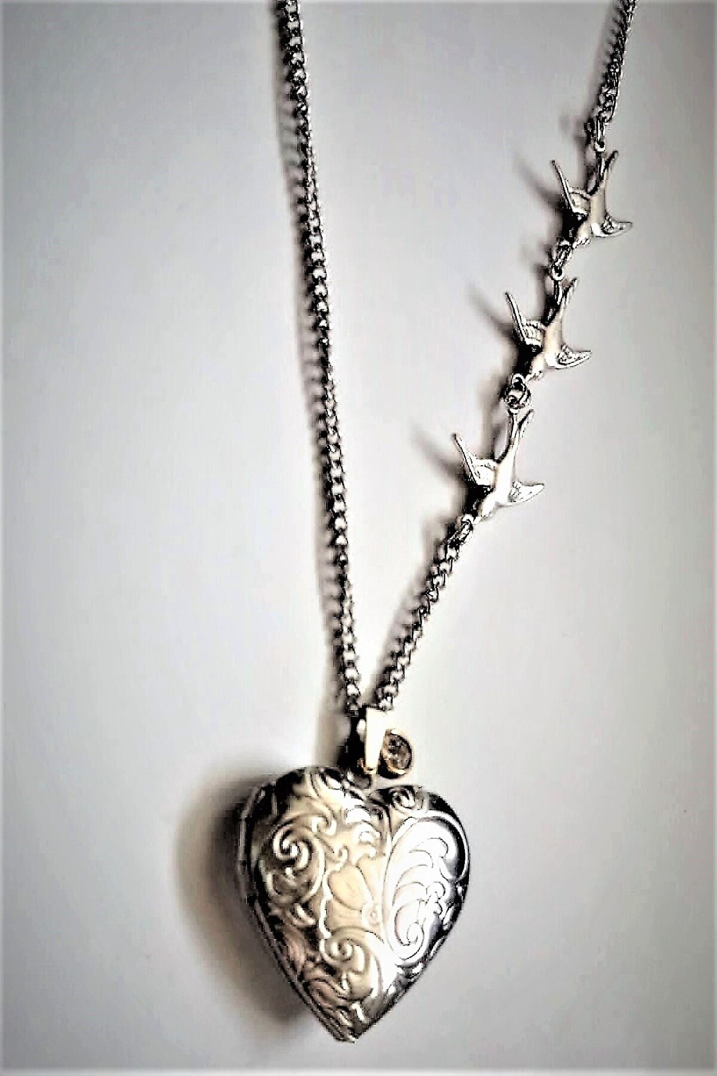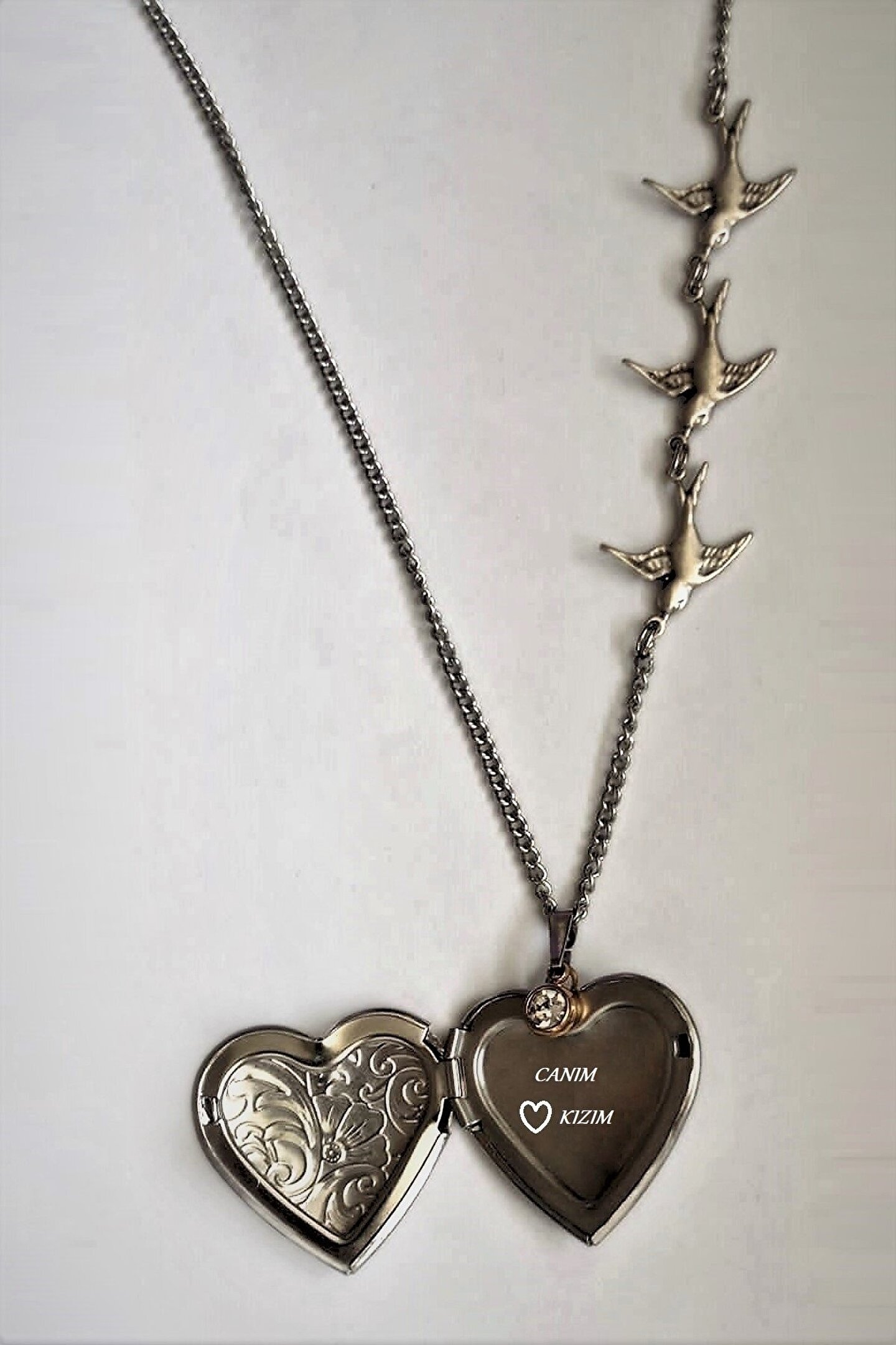 ÜRÜN DETAYI: Kristal taşlı kapaklı çelik kalpli madalyon kolye kuş figürü ile sana özel SEVGİYLE tasarlandı... ; Sevdiklerinize hediye edebileceğiniz orjinal bir tasarım... ; İçine ister resim ister tarih isterseniz isim yazalım. ; Ahşap kutulu doğal taşlı madalyon kolye yi yeni yıl, yıldönümü,doğum günü,sevgililer gününde hediye olarak alabilirsiniz... ; Ahşap kutu üzerine de yazı yazdırabilirsiniz.Sevdiklerinizi şımartın... ; Sayfamızdaki tüm ürünler el yapımıdır ve tamamen kendi tasarımlarımızdır. ; ÜRÜN ÖLÇÜSÜ: Madalyon: 2,5 cm Zincir: 70 cm (zincir ölçüsü isteğe bağlı değiştirilebilir) MATERYAL: Çelik, Kristal Taş,Pirinç;