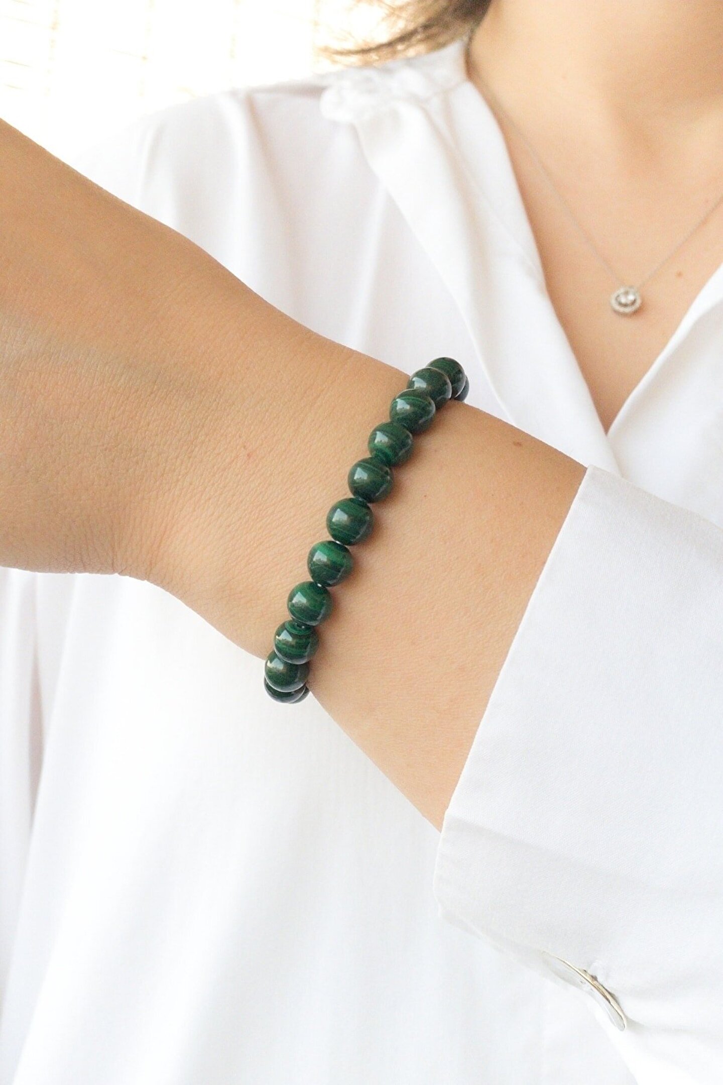 Malakit taşının ağrıları giderici özelliği olduğu ve içerisindeki bakırdan dolayı negatif enerjiyi temizlediği ilgili kurumlarca açıklanmıştır. ; Bilekliklerimiz8mm Küre Kesim A ve AA Kalite Doğal Taşlardan Dizilmektedir. ; Doğal Taşlar Renk ve Gramaj Olarak Birbirlerinden Farklılık Gösterebilir. ; Doğaltaşların titreşim ve frekanslara sahip olduğu bilinmektedir. Bu nedenle vücudumuzda bazı etkilere yol açtığı söylenmektedir. ; Taşların özelliklerinin bilimsel kesinliği yoktur. Fakat satışta olan ürünlerimiz orjinal, gerçek doğal taşlardır. ; Tıbbi konularda doktora danışmanızı tavsiye ederiz. ; Tüm Fotoğraflar tarafımıza ait olup tüm hakları Begi Ticaret şirketine Aittir. ;