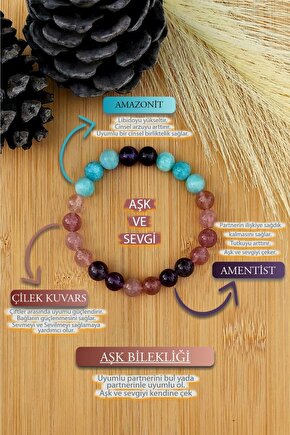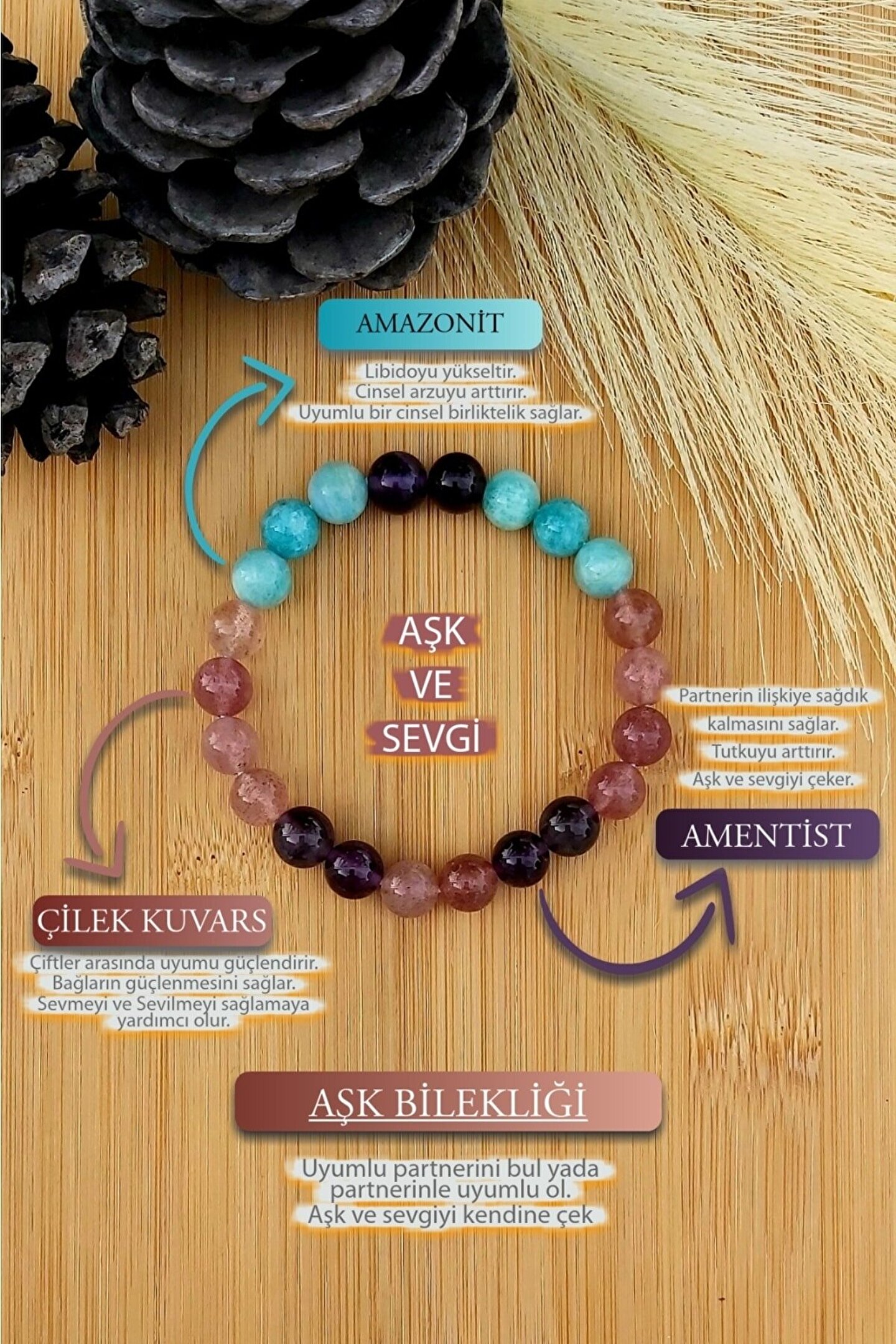 Lalibo Doğal Taş Kadın Erkek Aşk Sevgi Sevgili Olma Bilekliği Amazonit Amentist Çillek Kuvars Bileklik