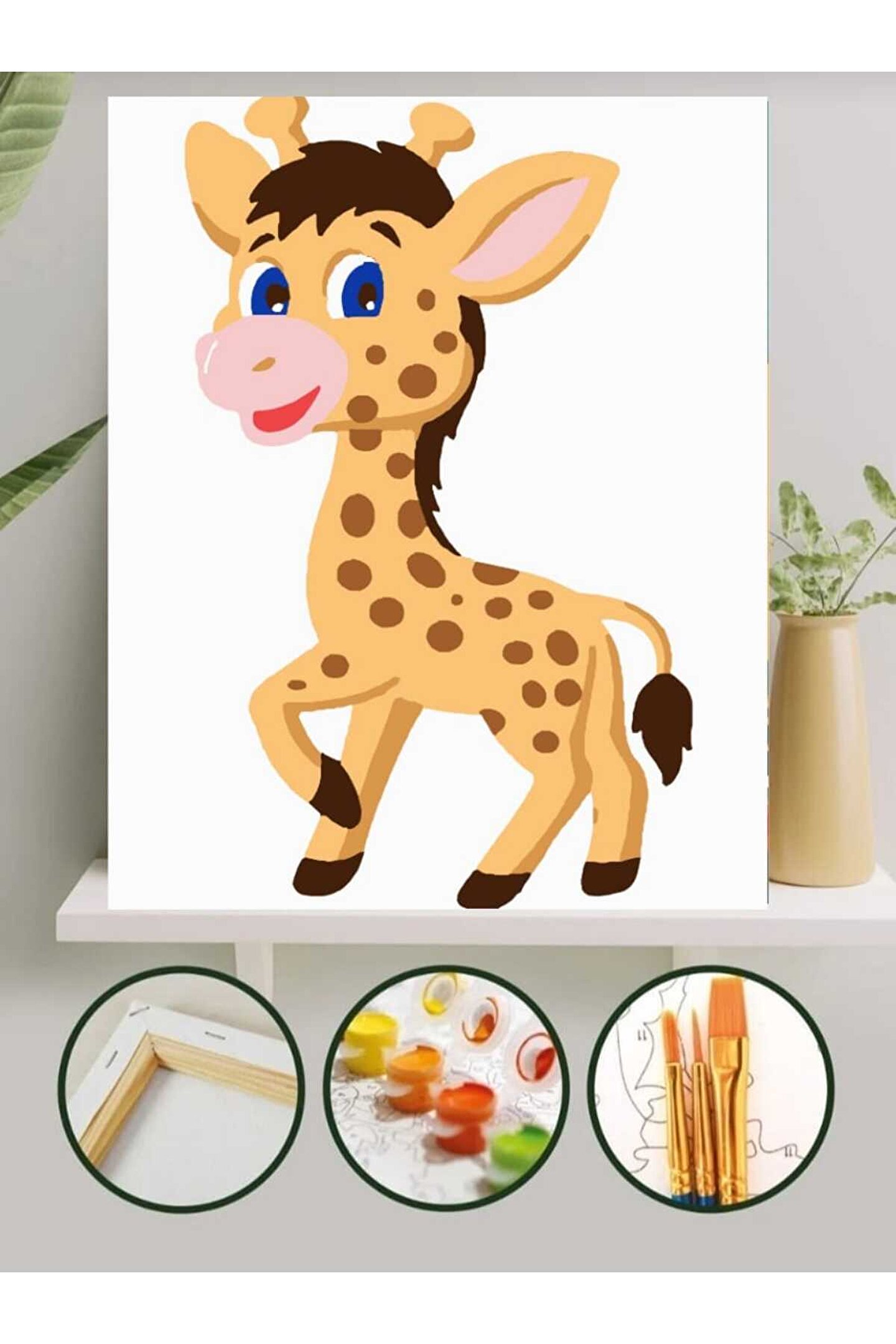 Lamba Cini Sayılarla Boyama Kasnaklı Tablo Seti Fırça Boya Dahil 30x40 ZÜRAFA