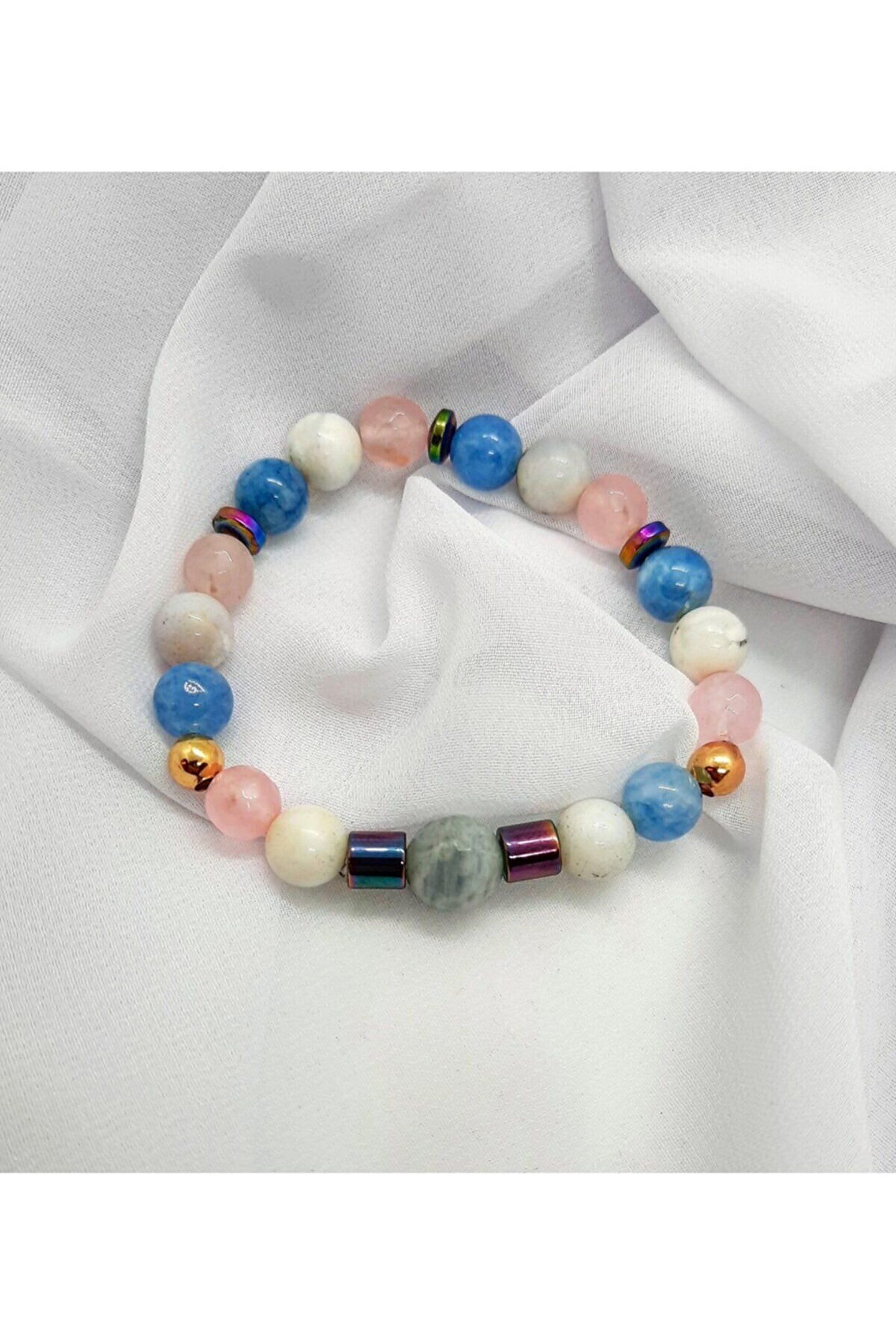 Doğal taş kullanımı sayesinde her bileklik benzersiz ve otantik bir görünüm sunar; Pembe kuvars taşı, bilekliğe zarif bir parlaklık ve enerji katar; Doğal taş materyali ile hem şıklığı hem de doğallığı bir arada yaşatır; Günlük kullanım için ideal olan bu bileklik, rahatlığı ve estetiği birleştirir;