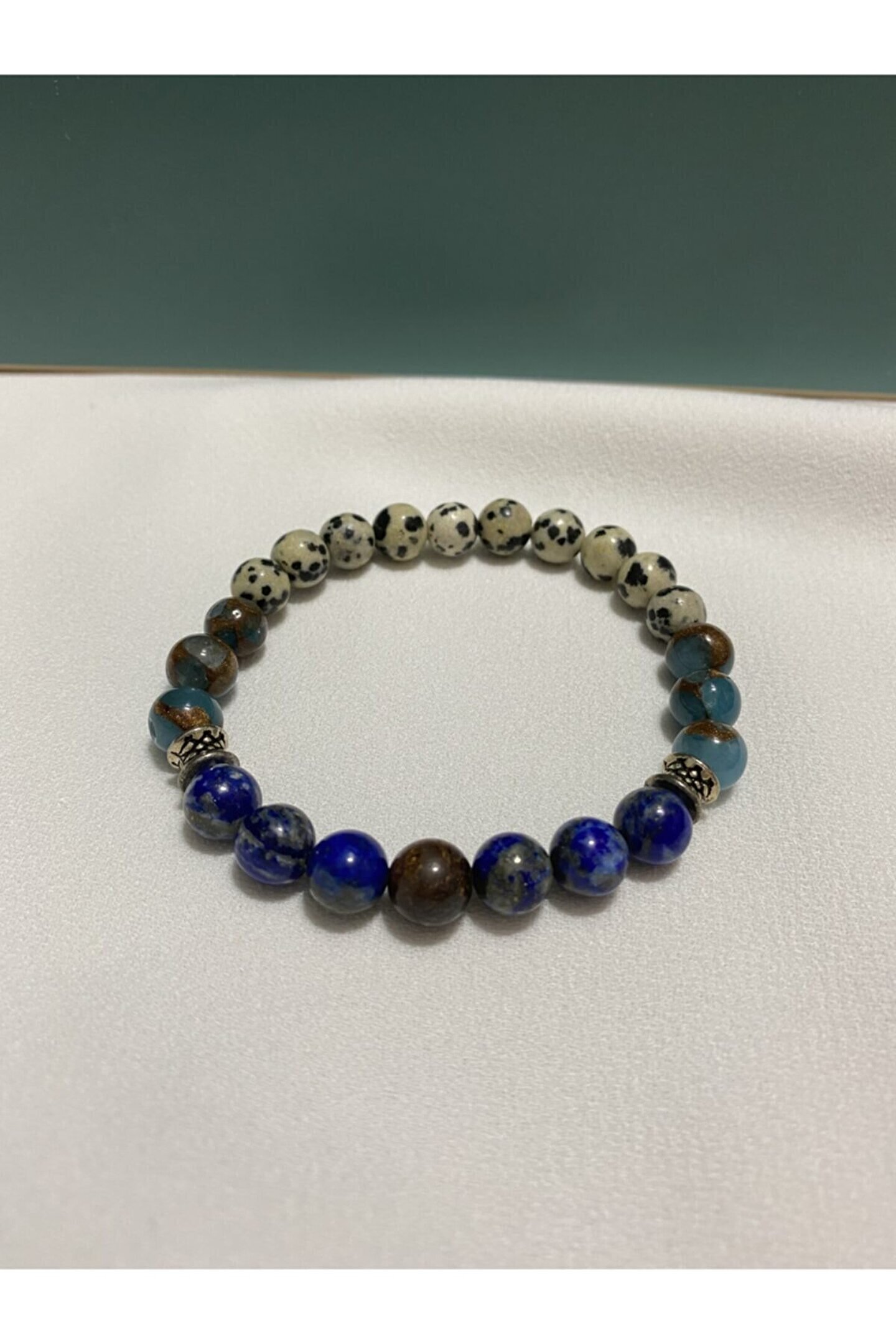 Doğal taş kullanımı sayesinde her bileklik benzersiz ve otantik bir görünüm sunar; Lapis lazuli ve Murano kuvars gibi nadir bulunan taşlarla tasarlanmıştır, bu da onu özel ve değerli kılar; Dalmaçyalı jasper taşı, bilekliğe modern ve şık bir dokunuş katar; Doğal taş materyali ile hem dayanıklılık hem de estetik bir parlaklık sağlar;
