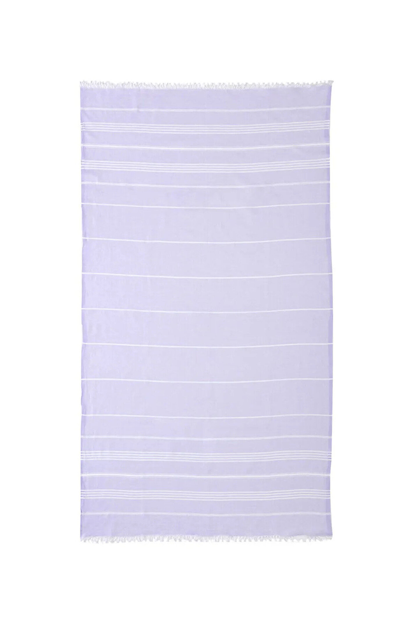 Lila Çizgili Saçaklı Pestamal Havlu 90x165 Cm