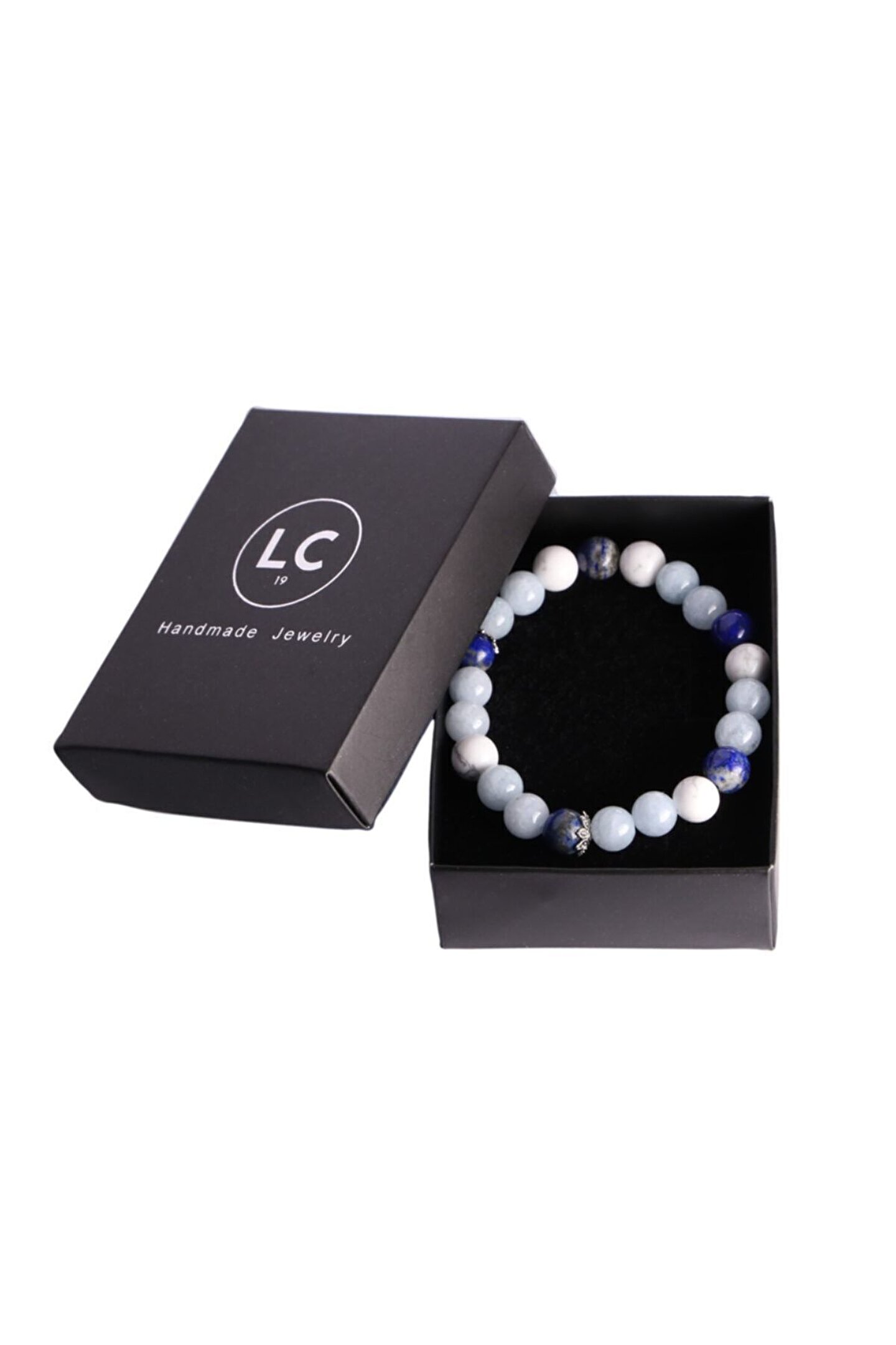 Doğal Lapis Lazuli Havlit AkuamarinTaş Depresyonu yenmenize yardım ediyor. ; Rahatlama taşı olan AKUAMARİN depresyon tedavisine yardım edip, gençlik, canlılık verir.; Zihinsel temizlik taşı olan LAPİS LAZULİ iç barışı ve kişinin kendisine değer vermesini sağlar.; Stres giderici mutluluk taşı olan HAVLİT de iç dünyanızı sakinleştirir, içinizdeki fırtınayı yumuşatır ve öfkenizi azaltır.; AKUAMARİN ve LAPİS LAZULİ birlikte vücudun hormon dengesini sağlayıp, tiroid bezlerinizi güçlendirirken HAVLİT de kalsiyum dengenizi korur.; AKUAMARİN alkol, sigara ve uyuşturucu gibi zehirli maddelerden uzak tutar, bunlara olan tiryakiliği zayıflatır ve solunum yollarında iyileştirici etkisi vardır.; ; Lapis Lazuli Havlit Akuamarin modelimiz ortalama 22-23 adet 8mm A kalite Gerçek Doğal Taştan oluşur.; Bileklikte kullanılan 925 ayar GÜMÜŞ ile doğal taşın etkisi arttırılmıştır. ; Bileklik dayanıklı elastik ip nedeniyle her bileğe uyumludur. Siparişiniz özel Lc19 kutusunda gönderilecektir. ;