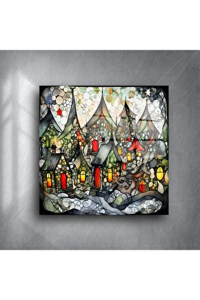 Bembeyaz karlar altında ışıkları yanan bir masal köyünü andıran bu cam tablo, vitray efektiyle kış mevsiminin sıcaklığını evinize getiriyor. Kırmızı kapılar, sarı pencereler ve detaylı çatılarla işlenmiş bu panel, çocukluğunuzdan bir anı gibi hissettiriyor.