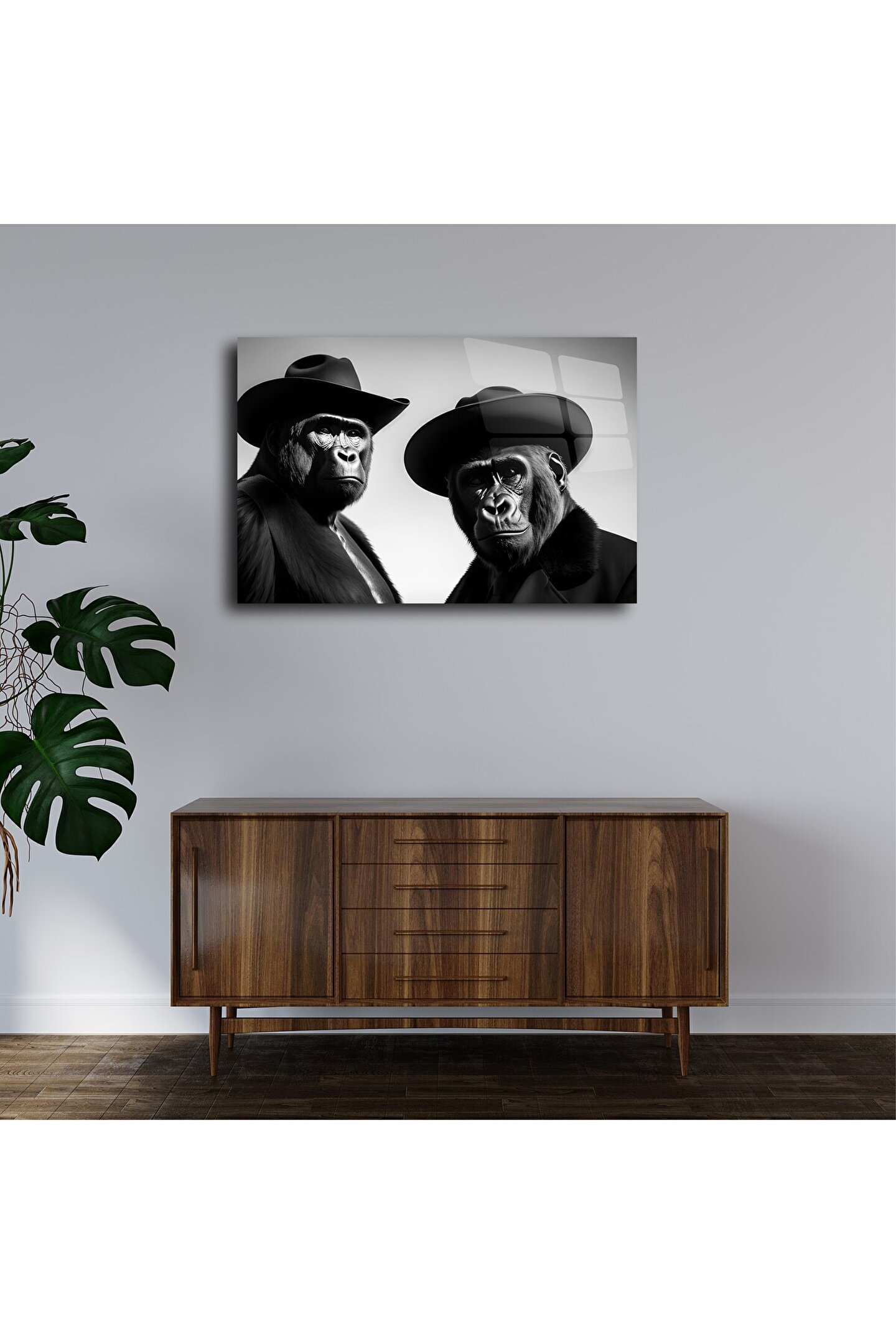 LEYLASER Şapkalı Goril Cam Tablo Duvar Dekoru