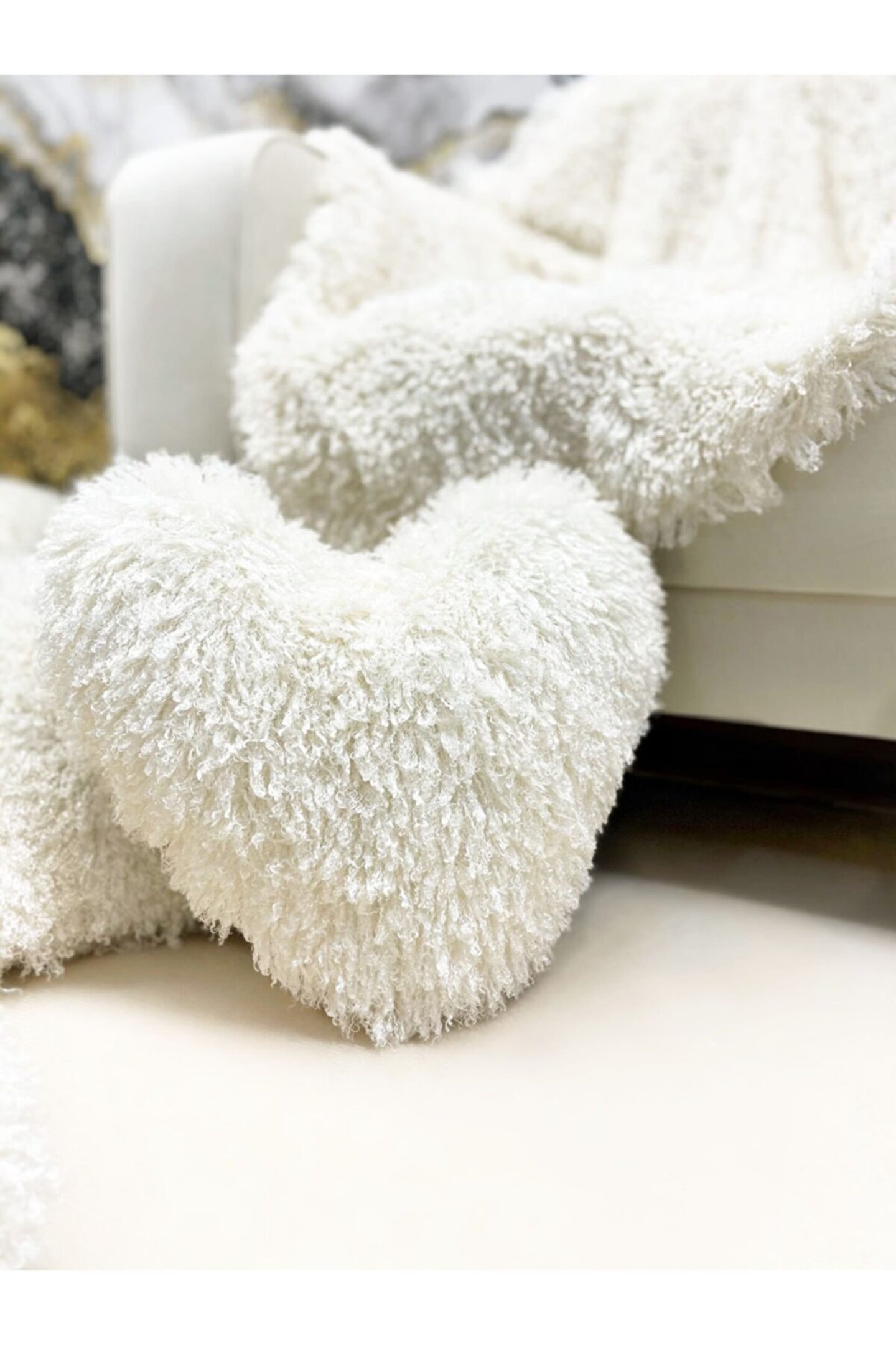 Beyaz Floş Kalp Dekoratif Yastık 45x45 cm Ürün iç dolgusu ile birlikte gönderilmektedir. ; İç dolgusu boncuk elyaftır. ; 30 derece hassas yıkama önerilmektedir, Ürün 1 adet gönderilmektedir.;