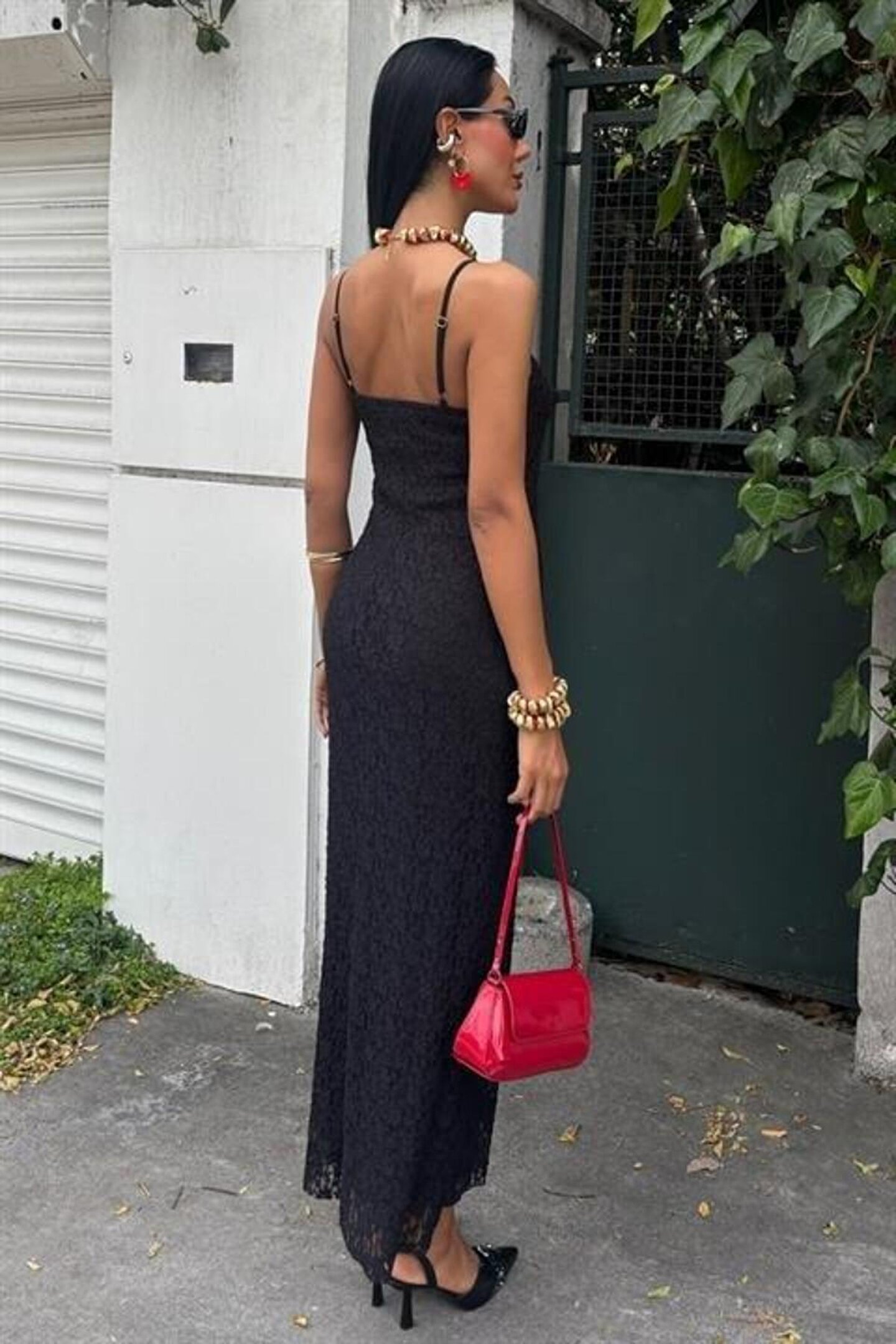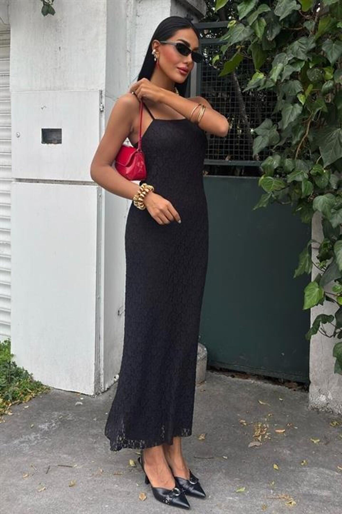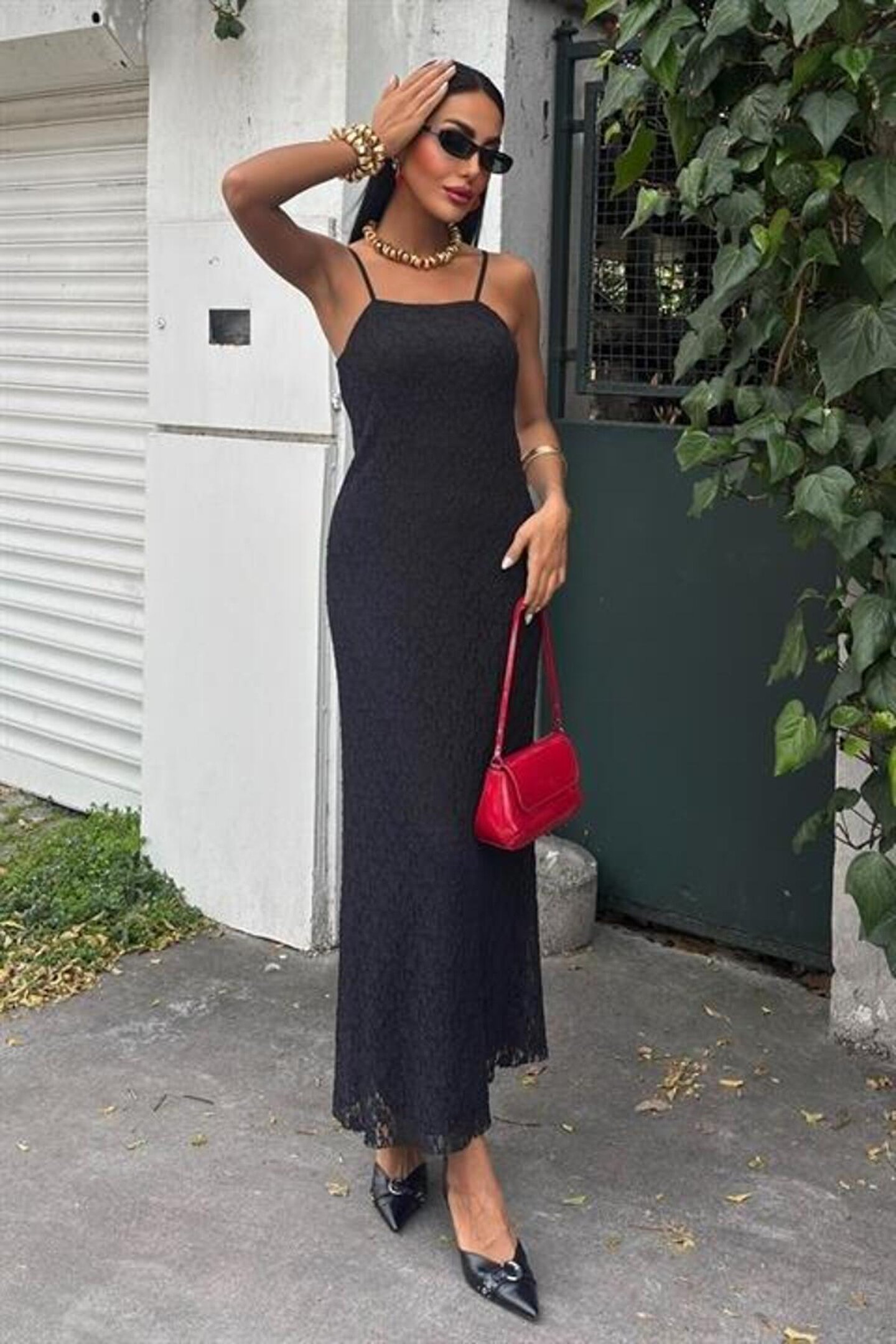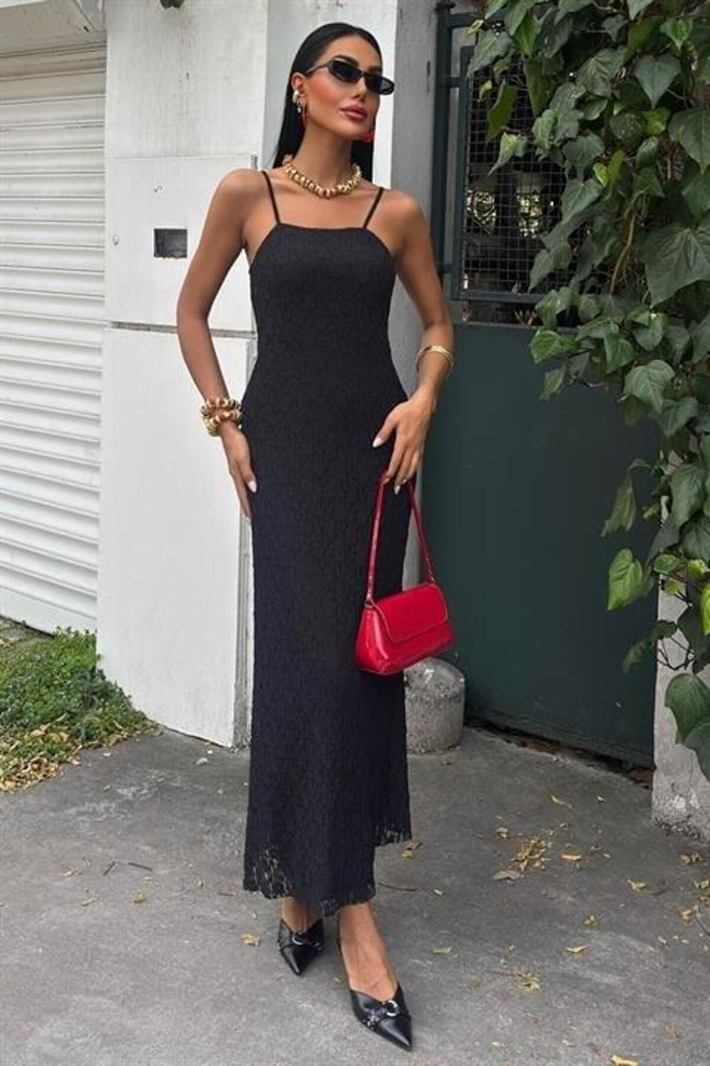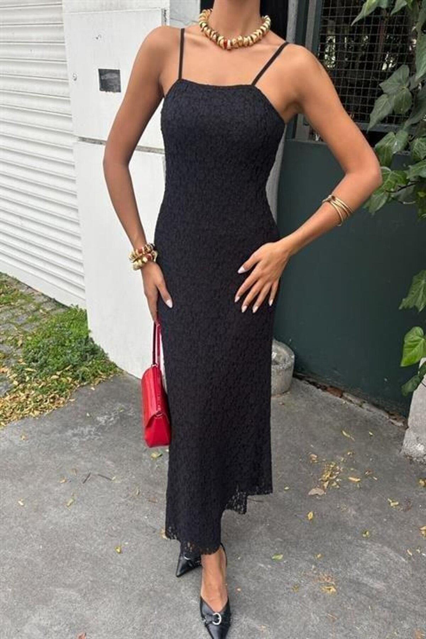 Lijuri Askıları Ayarlanabilir Örme Dantel Elbise 2879