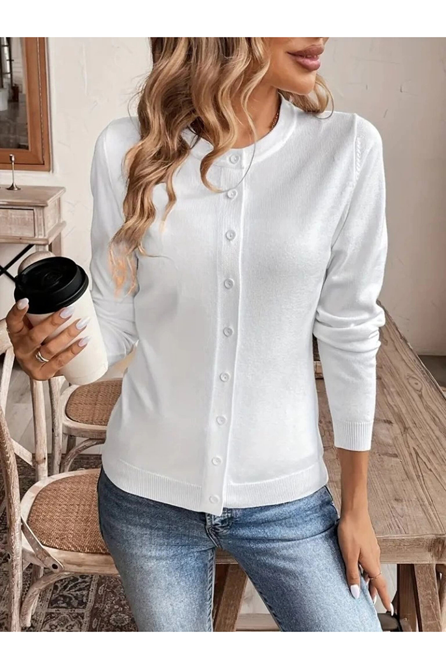 Kadın Uzun Kollu önden Düğmeli Triko Ceket