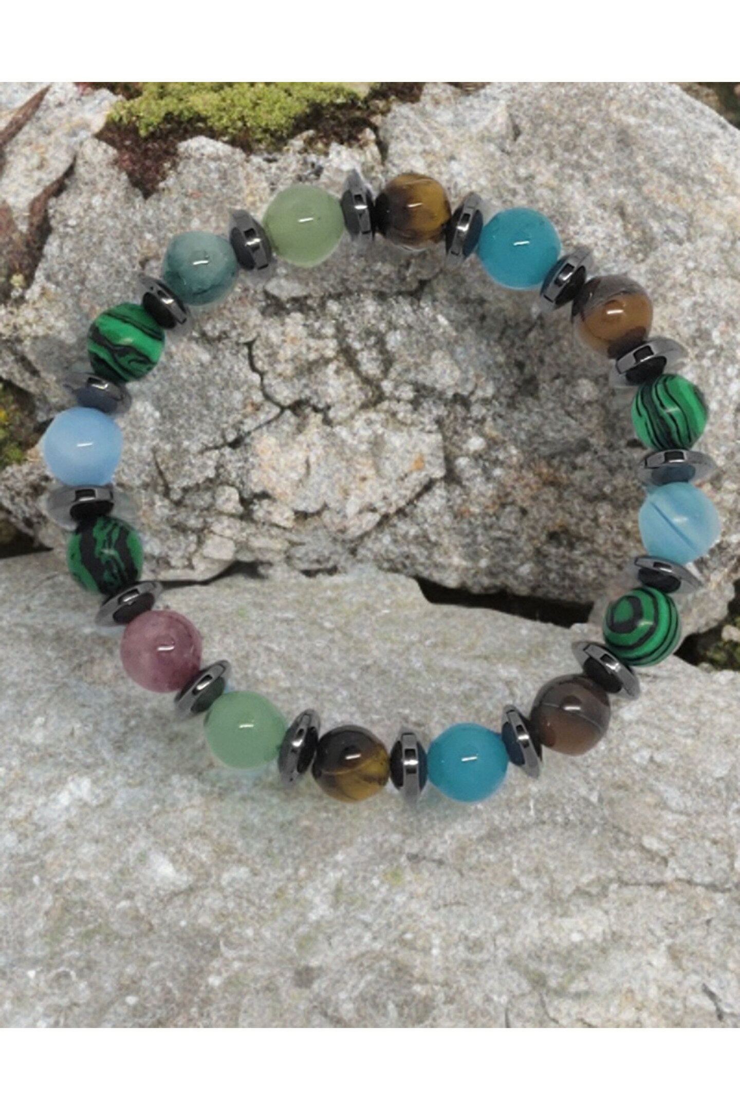 Doğal Taşlı Alerji Dostu Bileklik – Esnek Misina ile Özel Tasarım Şıklığı ve sağlığı bir araya getiren doğal taş bilekliğimiz, alerjiye yatkın ciltler için özel olarak tasarlanmıştır.; Esnek misina ile hazırlanmış yapısı sayesinde bileğinize rahatça uyum sağlar ve gün boyu konfor sunar.; Ürün Özellikleri: ✔ Doğal taşlar: Şık ve enerjisi yüksek taşlarla tasarlanmıştır.; ✔ Esnek misina: Kolay kullanım ve bileğe tam uyum sağlar.; ✔ Alerji dostu: Cildinizi tahriş etmez, nikel ve zararlı metaller içermez.; ✔ El yapımı: Özenle tasarlanmış ve el işçiliğiyle üretilmiştir.; Doğal taşların enerjisini bileğinizde hissedin! Hem kendiniz hem de sevdikleriniz için özel bir hediye alternatifi.; Şimdi sipariş verin ve doğallığın zarafetini keşfedin!