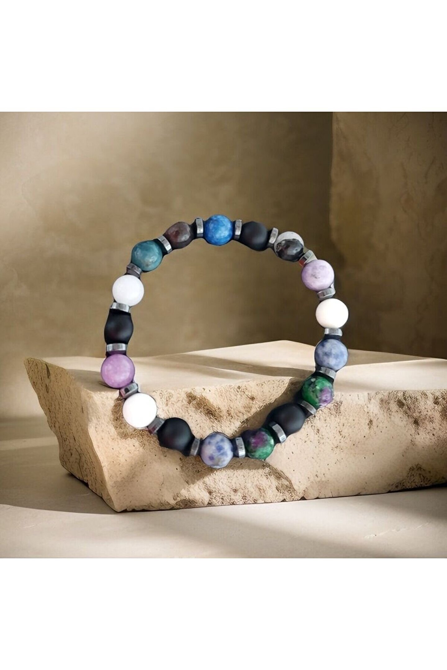 Doğal taşlar içerdiği mineraller sayesinde ve kendilerine has titreşimleri ile insan vücudunda olumlu etkilere sahiptirler. ??Taşlar bünyesinde bulundurduğu mineraller yardımı ile bedenimizde mineral bakımından eksiklikler var ise bunları tamamlamaya yardımcı olur. ??Vücudumuza yaydığı enerji ile çakraları dengelemeyi sağlarken ruh sağlığımızı korur, negatif enerjileri emip pozitif enerji yayar.??Değerli doğal taşların özellikleri ve faydalarını; %100 tedavi yöntemi olarak değil, yardımcı bir alternatif olarak değerlendirmeliyiz. ??Bu modelde esnek misina kullanılmıştır.??ürünlerimiz kendi tasarımımızdır. ??Doğaltaşlar kesim itibari ile renk ve şekil değişikliği gösterebilmektedir.