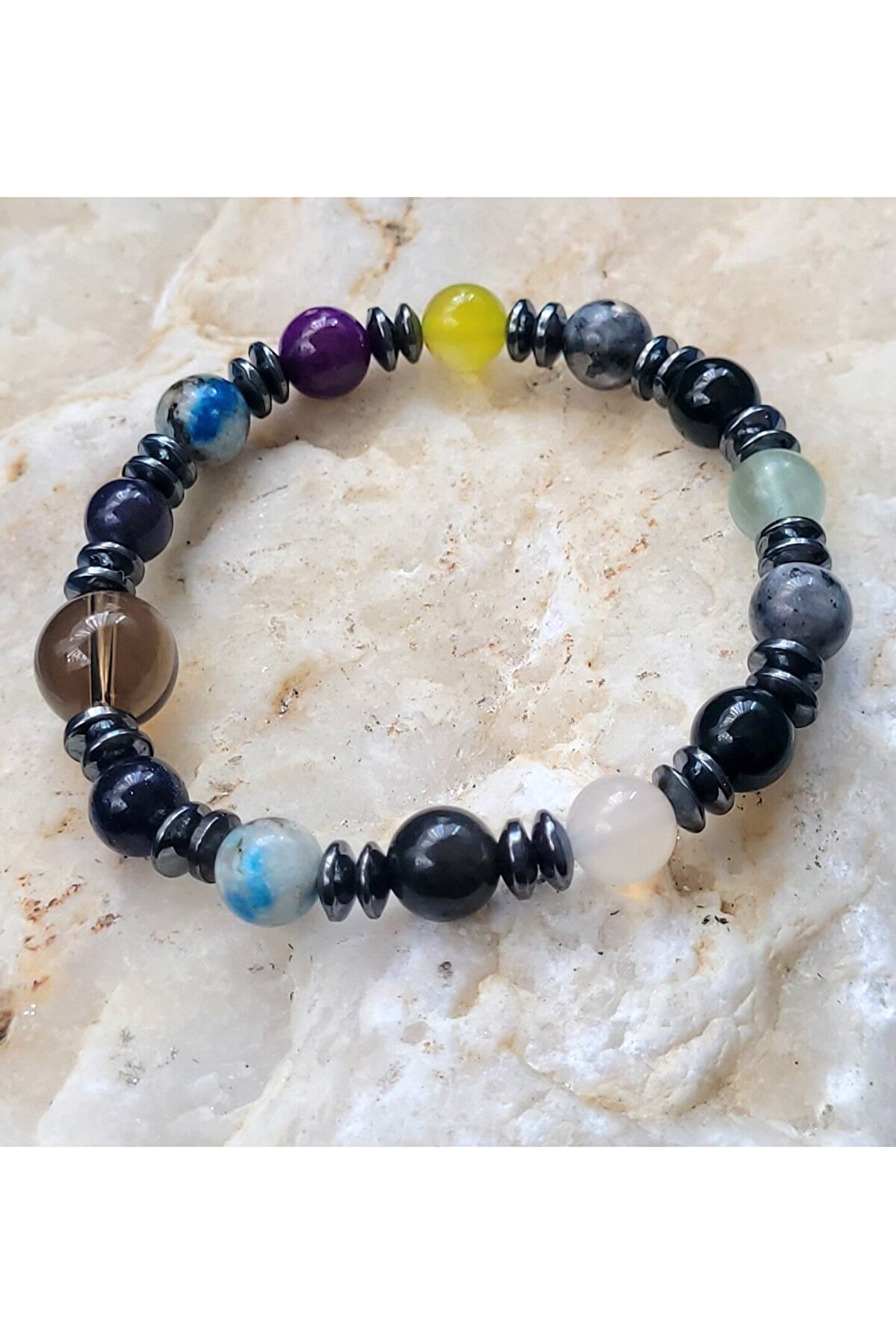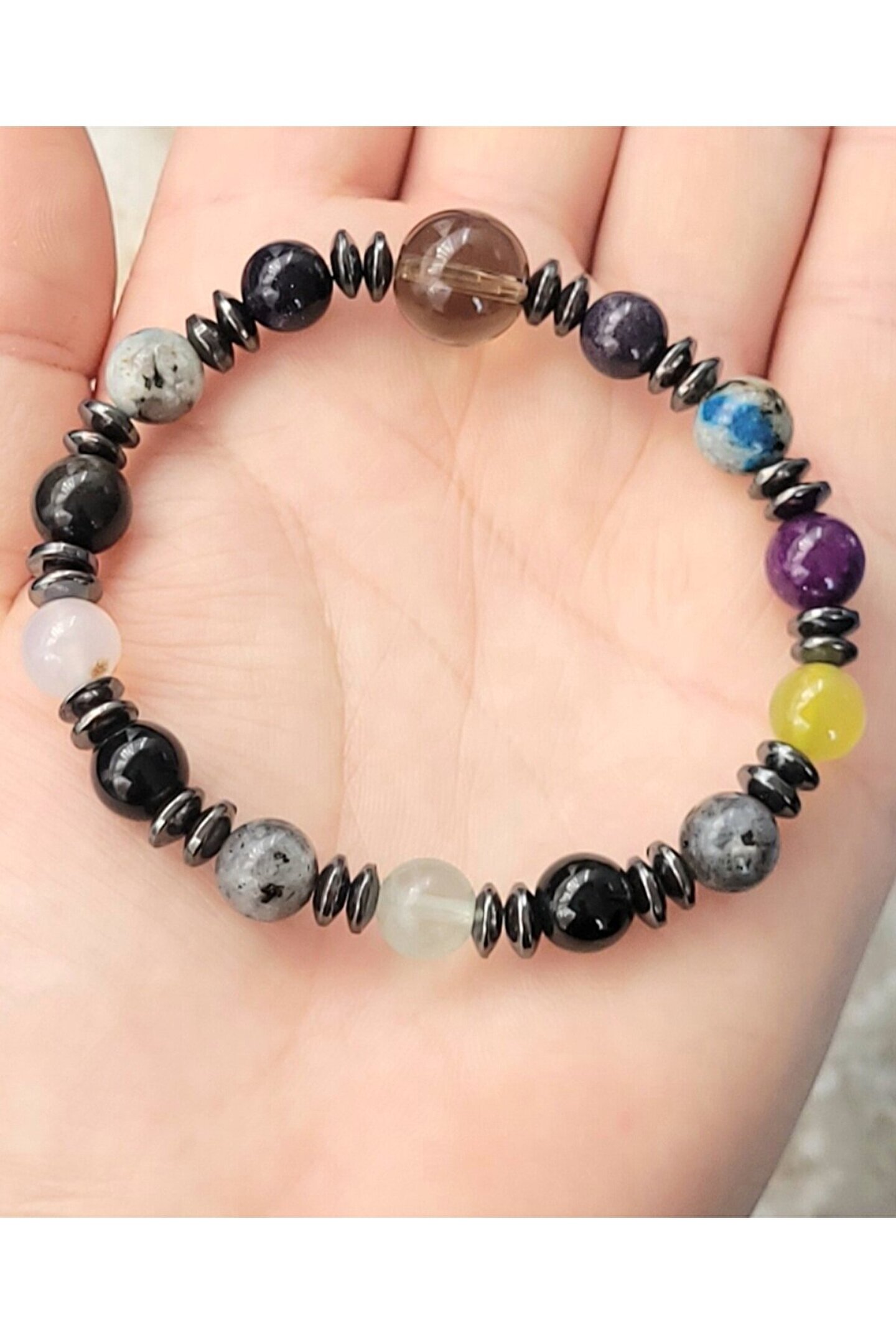 ??Doğal taşlar içerdiği mineraller sayesinde ve kendilerine has titreşimleri ile insan vücudunda olumlu etkilere sahiptirler. ??Taşlar bünyesinde bulundurduğu mineraller yardımı ile bedenimizde mineral bakımından eksiklikler var ise bunları tamamlamaya yardımcı olur. ??Vücudumuza yaydığı enerji ile çakraları dengelemeyi sağlarken ruh sağlığımızı korur, negatif enerjileri emip pozitif enerji yayar.??Değerli doğal taşların özellikleri ve faydalarını; %100 tedavi yöntemi olarak değil, sorunumuzun yada eksikliğimizin giderilmesinde yardımcı bir alternatif olarak değerlendirmeliyiz. ??Bu modelde esnek misina kullanılmıştır.??ürünlerimiz kendi tasarımımızdır. ??Doğaltaşlar kesim itibari ile renk ve şekil değişikliği gösterebilmektedir.