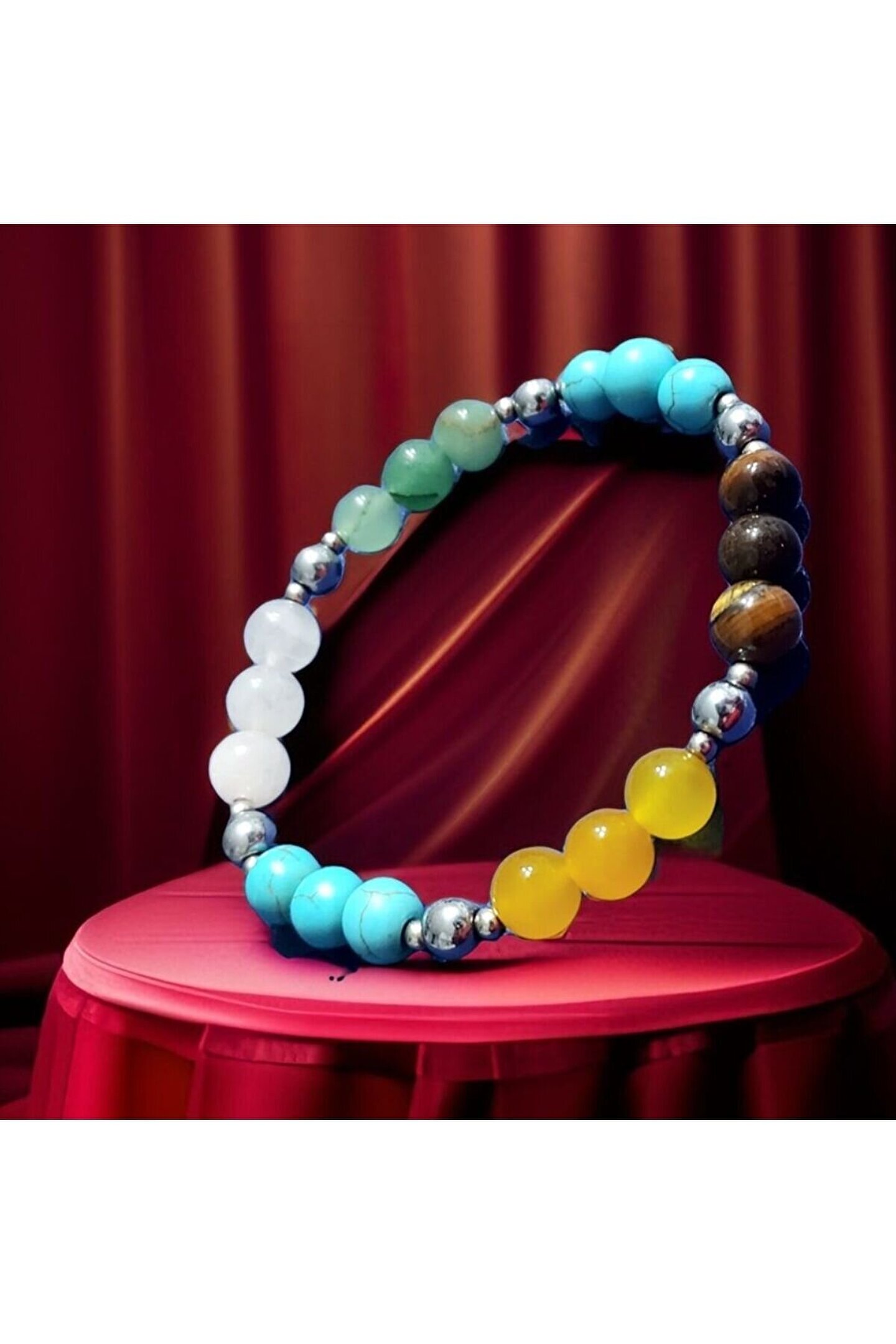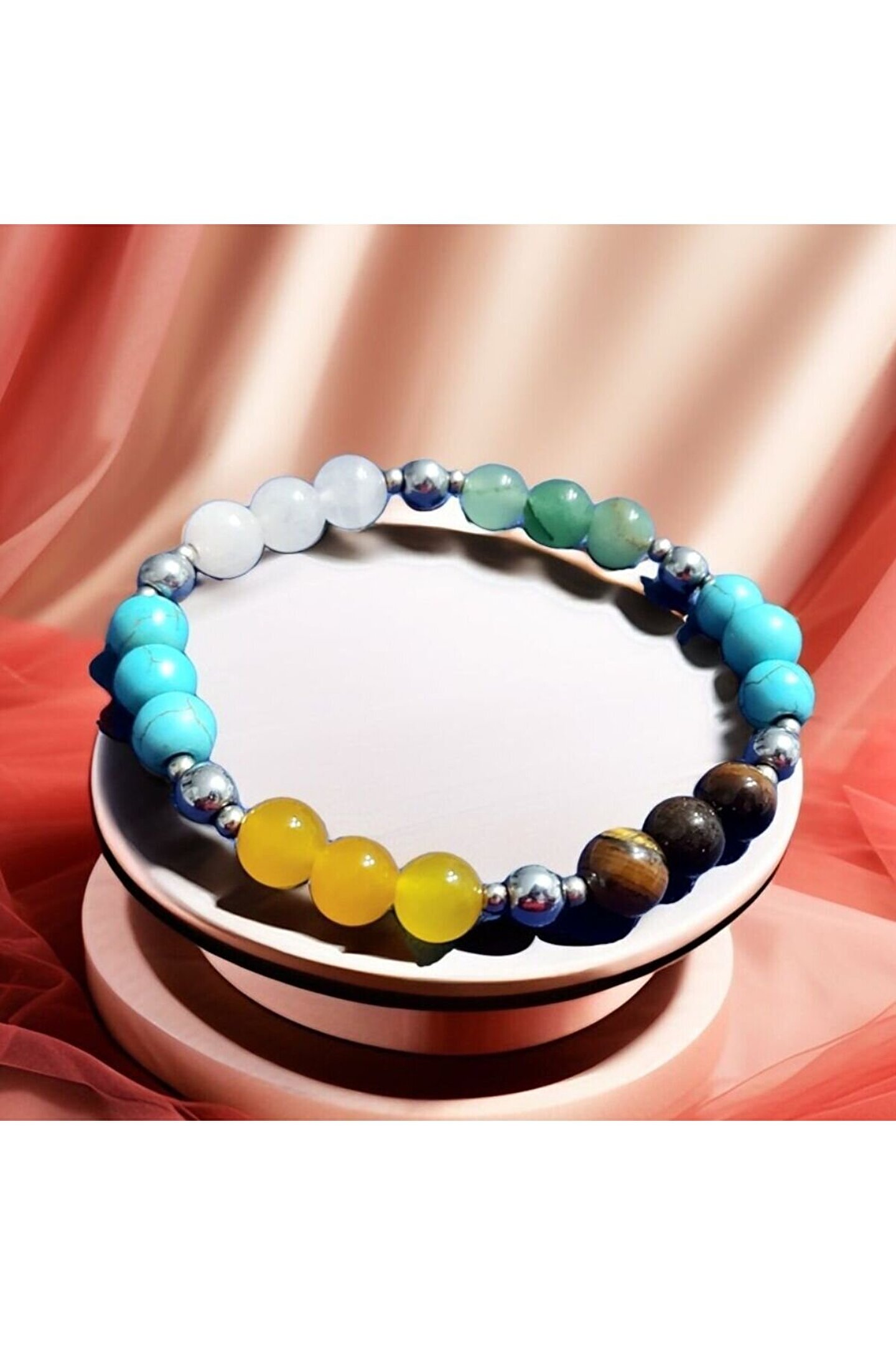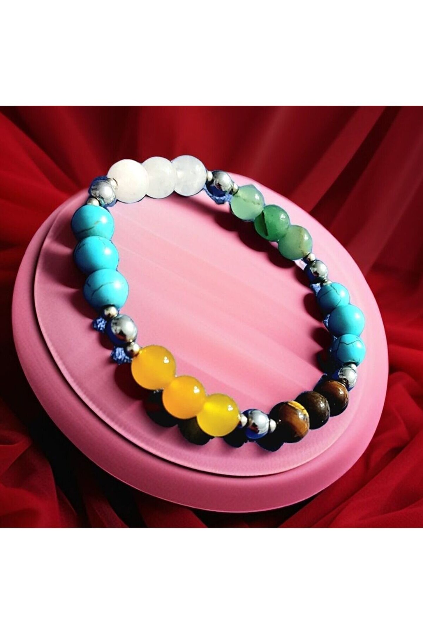 ??Doğal taşlar içerdiği mineraller sayesinde ve kendilerine has titreşimleri ile insan vücudunda olumlu etkilere sahiptirler. ??Taşlar bünyesinde bulundurduğu mineraller yardımı ile bedenimizde mineral bakımından eksiklikler var ise bunları tamamlamaya yardımcı olur. ??Vücudumuza yaydığı enerji ile çakraları dengelemeyi sağlarken ruh sağlığımızı korur, negatif enerjileri emip pozitif enerji yayar.??Değerli doğal taşların özellikleri ve faydalarını; %100 tedavi yöntemi olarak değil, sorunumuzun yada eksikliğimizin giderilmesinde yardımcı bir alternatif olarak değerlendirmeliyiz. ??Bu modelde esnek misina kullanılmıştır.??ürünlerimiz kendi tasarımımızdır. ??Doğaltaşlar kesim itibari ile renk ve şekil değişikliği gösterebilmektedir.