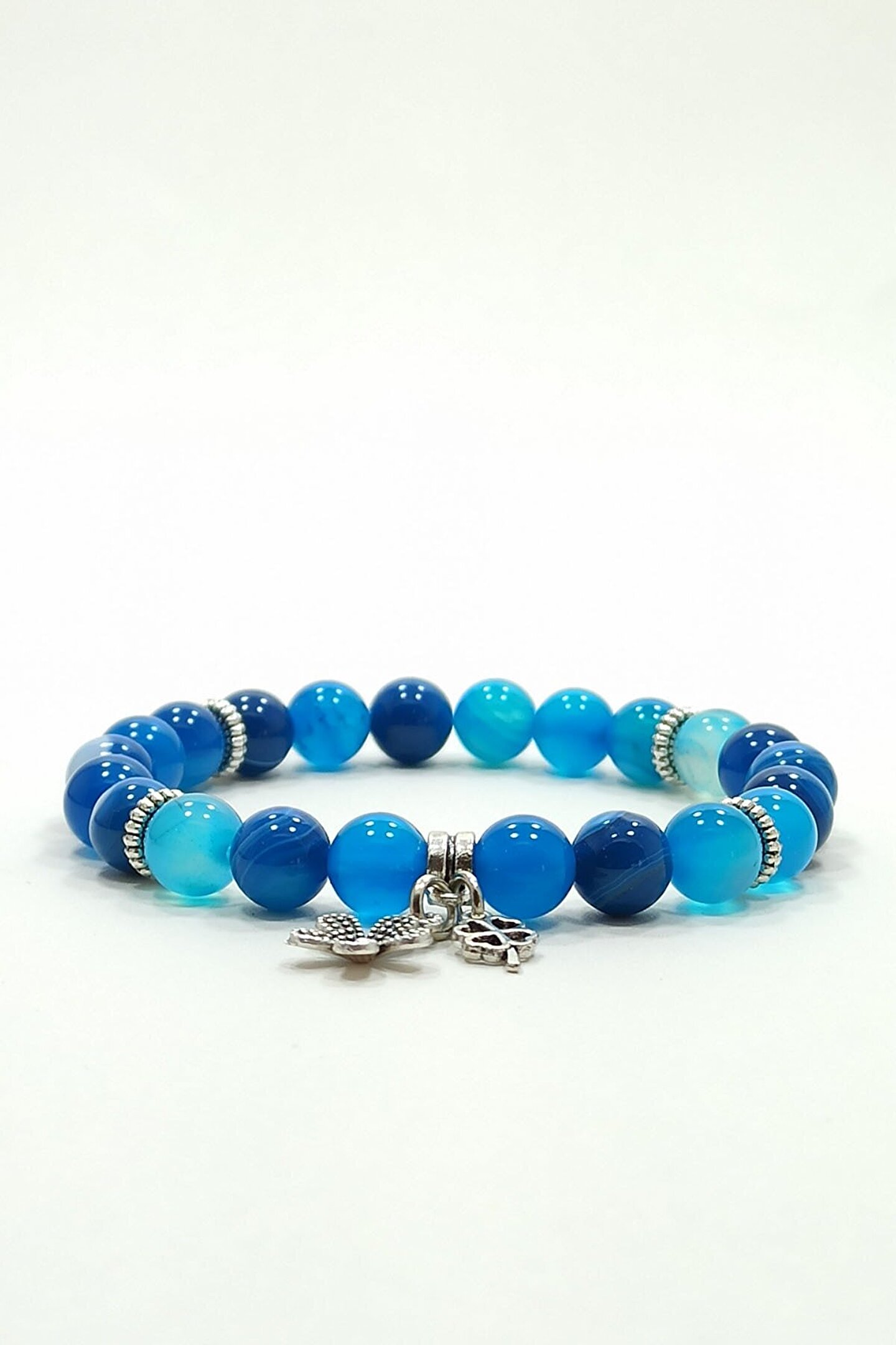 Doğal akik taşı kullanılarak üretilmiş, zarif ve otantik bir aksesuar deneyimi sunar; Moskova'da el işçiliği ile hazırlanmış, her bir bileklik benzersiz ve özgün bir tasarıma sahiptir; Mavi akik taşı, bileklikte doğal güzelliğini ve şıklığını ön plana çıkarır;