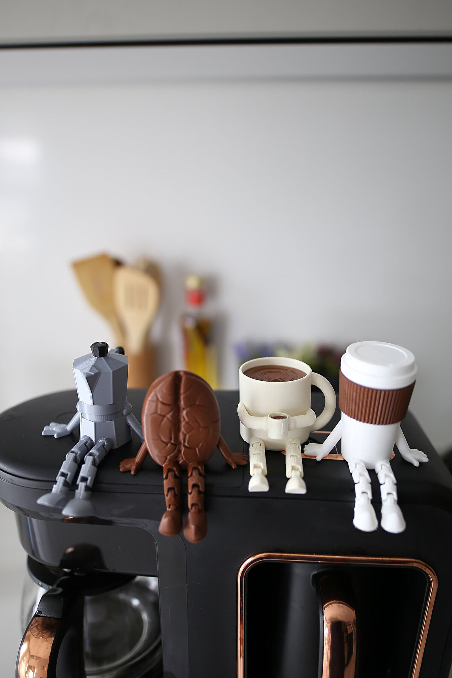 Sağlığa zararlı olmayan plastik malzemeden dolayı üretilmiş, uzun ömürlü kullanım sunar.; ; Modern tasarımıyla mutfak dekorasyonunuza şık bir dokunuş katar.; ; Türkiye'de üretilmiş olup yerel kaynakların etkin kullanımıyla çevre dostu bir seçimdir.; ; Dört parçadan oluşan set; Moka Pot, Kahve Çekirdeği, Kahve Bardağı ve Kupa içerir, böylece kahve keyfinizi tamamlar.; ; Ortalama 5 cm boyutlarındaki bu ürünler, küçük alanlarda bile kolayca yer bulur ve estetik görünüm sağlar.; SET 4 PARÇADAN OLUŞMAKTADIR.