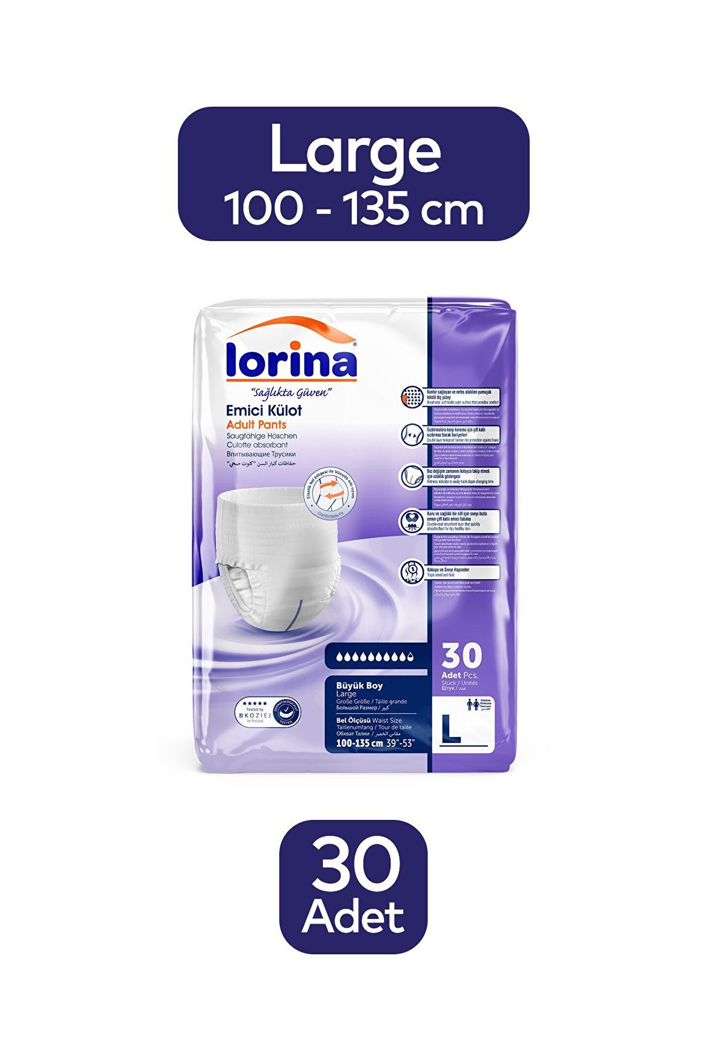 - Geniş beden seçeneği ile her kullanıcıya uygun konfor sunar.; - Emici özelliği sayesinde uzun süreli kullanımlarda bile maksimum rahatlık sağlar.; - Hasta bezi olarak tasarlanmış olup, özel ihtiyaçlara yönelik ergonomik yapıdadır.; - Üretiminde yerel kaynaklı malzemeler kullanılarak sürdürülebilirlik ön planda tutulmuştur.