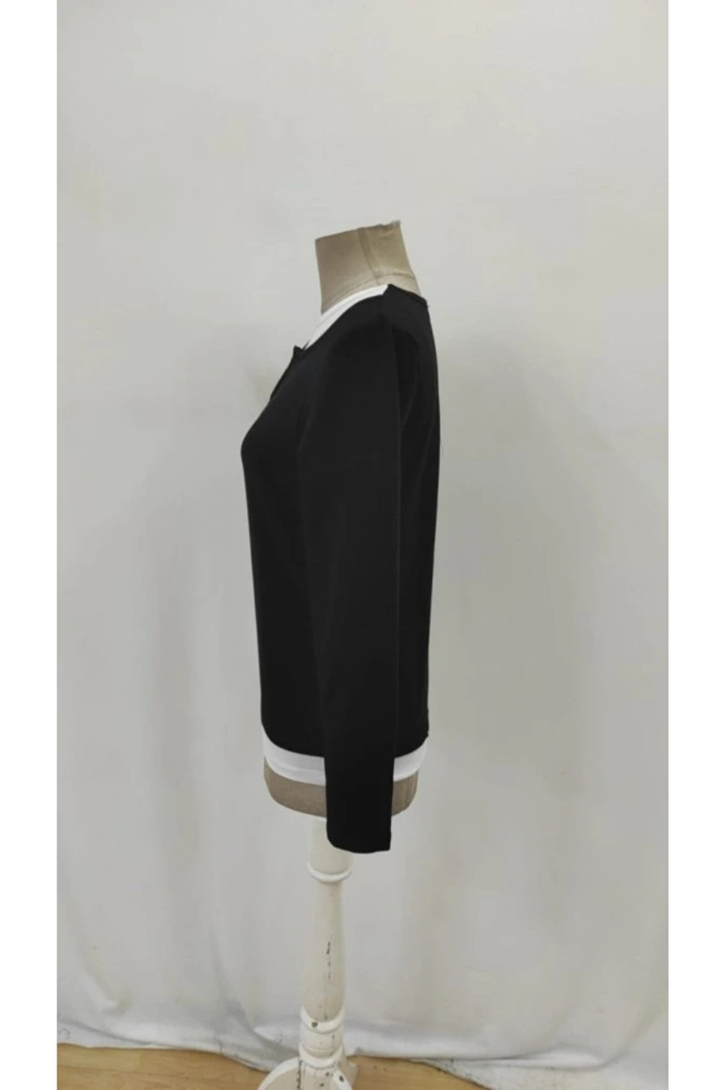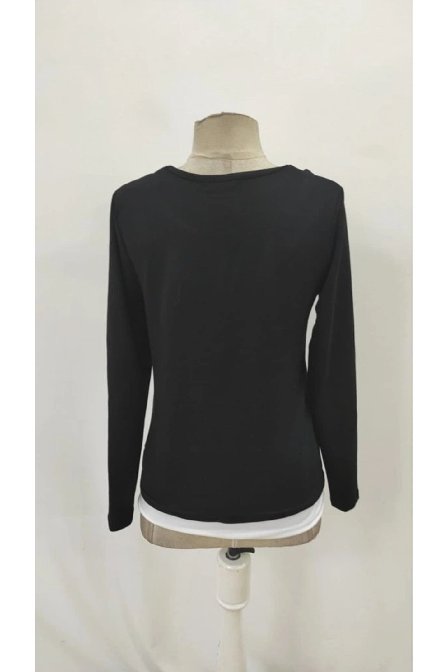 Luis & Lea Kadın Uzun Kollu V Yakalı çift Renkli Viskon Iki Iplik Bluz