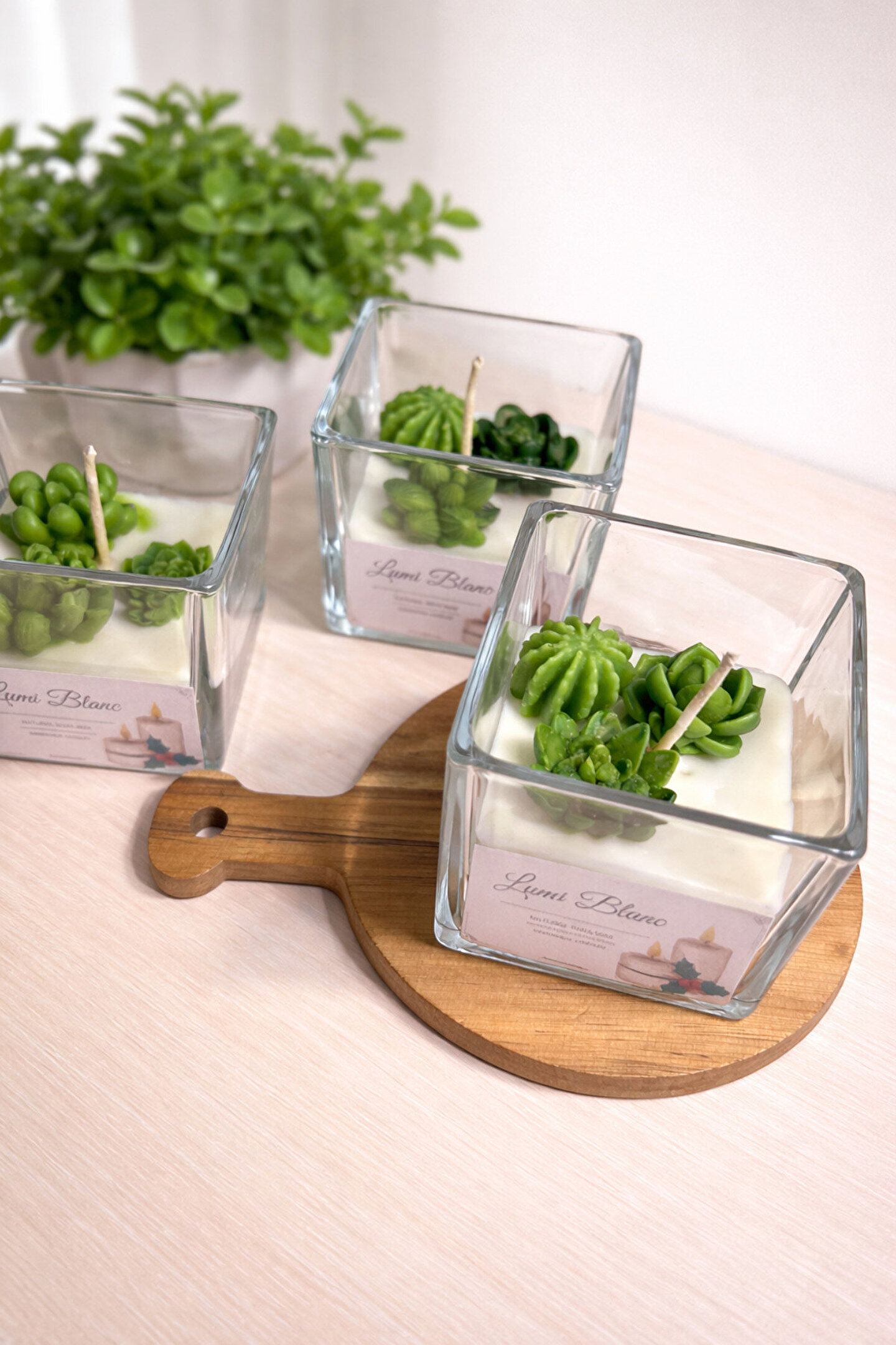 Lumi Blanc Echeveria Kokulu Soya Mum – Vanilya – El Yapımı Dekoratif SukulentKaktüs Mum