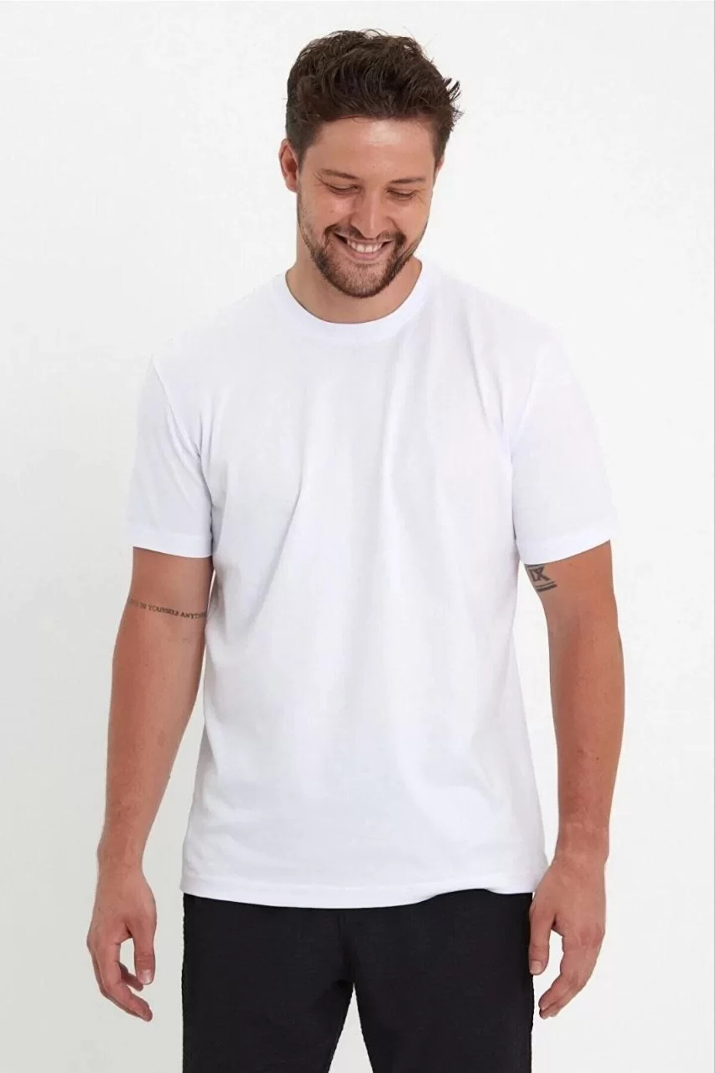 LUMİART Erkek 241 Düz A Kalite Oversize T-shirt - Beyaz
