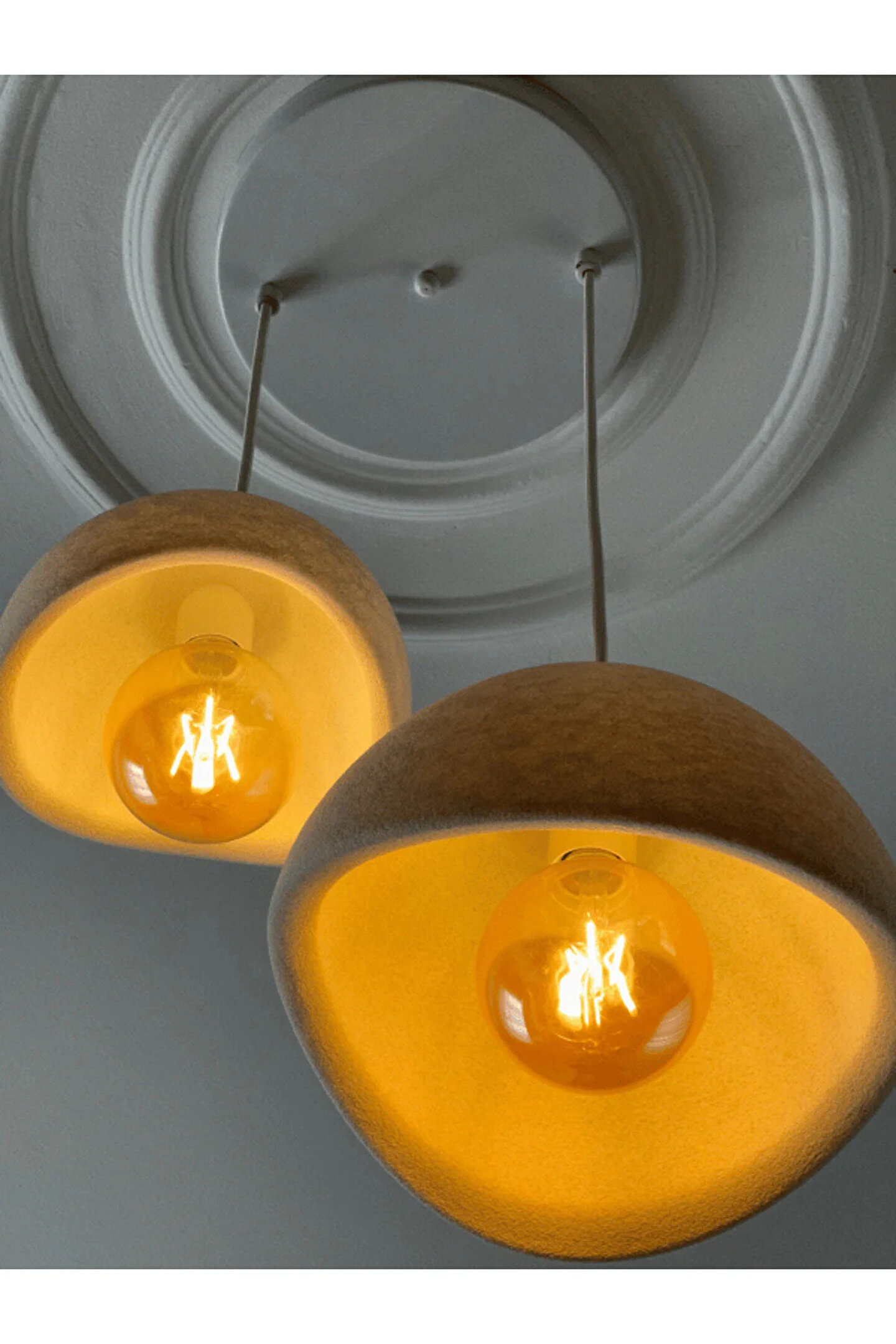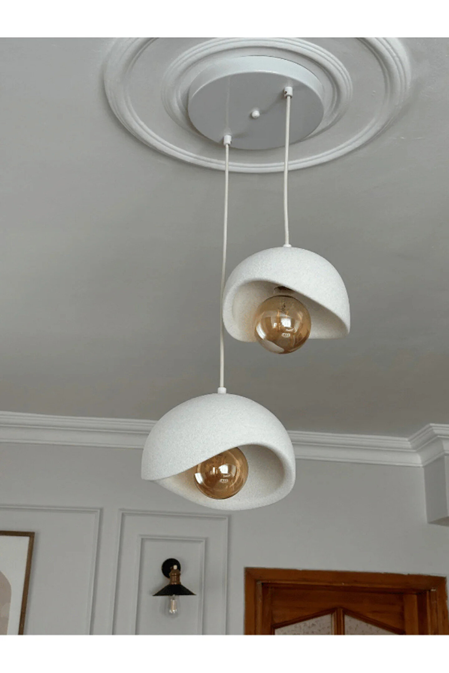 Beton Görünümlü İskandinav & Bohem Tarz 2’li Sarkıt Avize - Profesyonel Tasarım, Gün Işığı Rustik Ampul İçerir ⸻ Ürün Açıklaması Lumiere Design 2’li Beton Görünümlü Sarkıt Avize – Üst Düzey İşçilik, Şık ve Dayanıklı Tasarım Evinize modern, sofistike ve zarif bir dokunuş katacak Lumiere Design 2’li Beton Görünümlü Sarkıt Avize, kaliteli malzeme ve profesyonel işçilik ile üretilmiştir.; Hem dayanıklılığı hem de göz alıcı tasarımıyla yaşam alanlarınıza estetik bir hava katar.; ✅ Üst Düzey Kalite & Profesyonel İşçilik •Dayanıklı ve uzun ömürlü malzemeler kullanılarak üretilmiştir.; Beton veya seramik gibi hassas değildir; darbelere karşı dayanıklı sert plastik başlıklar sayesinde güvenle kullanılabilir.; • Metal rozans ve demir kablo sıkıştırıcı klipsler, ürüne hem şıklık hem de sağlamlık kazandırır.; •Kaliteli kumaş kaplı kablo, sadece işlevsellik değil, aynı zamanda tasarımda modern bir görünüm sağlar.; ✅ Öne Çıkan Teknik Detaylar •Başlık Çapları: 30 cm - 20 cm •Ağırlık: 2 - 2,5 kg •Ampuller: Gün ışığı rustik ampul ile gönderilir (E27 duy uyumlu).; •Kutu İçeriği: Montaj için gerekli vida ve dübeller dahildir.; •Kablo Uzunluğu: 1 metre olup, klipsleri serbest bırakarak uzatıp kısaltabilirsiniz ve istediğiniz yüksekliği kolayca ayarlayabilirsiniz.; •Anahtar Uyumluluğu: Tekli, ikili ve üçlü anahtarla kullanılabilir.; Ancak elektrik tesisatınızın uygun olup olmadığını kontrol etmeniz önerilir.; ✅ Kolay ve Güvenli Kurulum •Ürün hazır kurulu şekilde gelir, sadece bağlantıları yapmanız yeterlidir.; Bu sayede hızlı ve zahmetsiz bir montaj imkanı sunar.; •Elektrik bağlantısı ve anahtar sistemine uygun hale getirme işlemlerini mutlaka bir elektrikçiye yaptırın.; Kendi başınıza müdahale etmeniz güvenli olmayabilir.; ✅ Pratik Kullanım & Uzun Ömürlü Tasarım •Nemli bir bezle kolayca temizlenebilir.; •Özel tasarlanmış sağlam kutu içinde güvenle teslim edilir.; ✨ Renk ve Model Seçenekleri Lumiere Design mağazamızda tekli, çiftli ve üçlü modellerin yanı sıra beyaz ve eskitme renk seçenekleri de mevcuttur.; Dekorasyon tarzınıza en uygun modeli seçerek yaşam alanlarınıza zarif bir dokunuş katabilirsiniz!