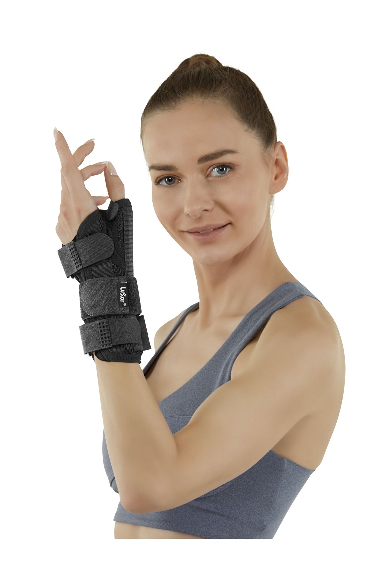 506 - THUMB ASSISTED HAND-WRIST SPLINT;In addition tohand-wrist splint that keeps hand in resting position, a thumb support providesthe thumb with fixing as well. A full stabilization is ensured by shaping thealuminium rod located right next to thumb. There are both left hand and righthand version. It has 5 sizes.;506 - BAŞPARMAK DESTEKLİ EL-BİLEK ATELİ;Eli istirahat pozisyonunda tutan atele ilaveolarak baş parmağı da sabitlemek için baş parmak desteği koyulmuştur. Başparmağın yanında bulunan alüminyum balene şekil verilerek tam stabilizasyonsağlanır. 5 ayrı boyu olan atelin sağ ve sol versiyonu vardır.;S Beden - 15-17 cm;M Beden - 17-19 cm;L Beden - 19-21 cm;XL Beden - 21-23 cm;XXL Beden - 23-25 cm