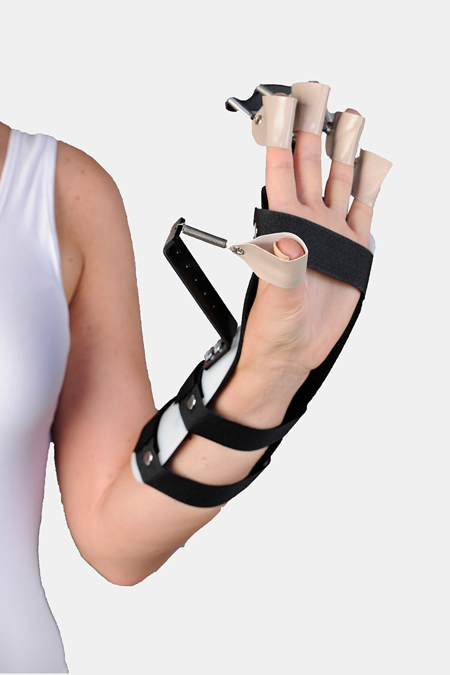 Felç, tendon ve ligament operasyonları sonrası, el parmak hareketlerinin kısıtlı olduğu durumlarda el parmaklarına egzersiz yaptırmak için kullanılır. ; El bilek ve parmakları pasif olarak ekstansiyonda tutar. ; Termoplastik malzemeden üretilmiş olup iç yüzeyi havlu kumaş kaplıdır. ; SMALL: 15-18CM ; MEDİUM: 19-21CM ; LARGE: 22-23CM ;