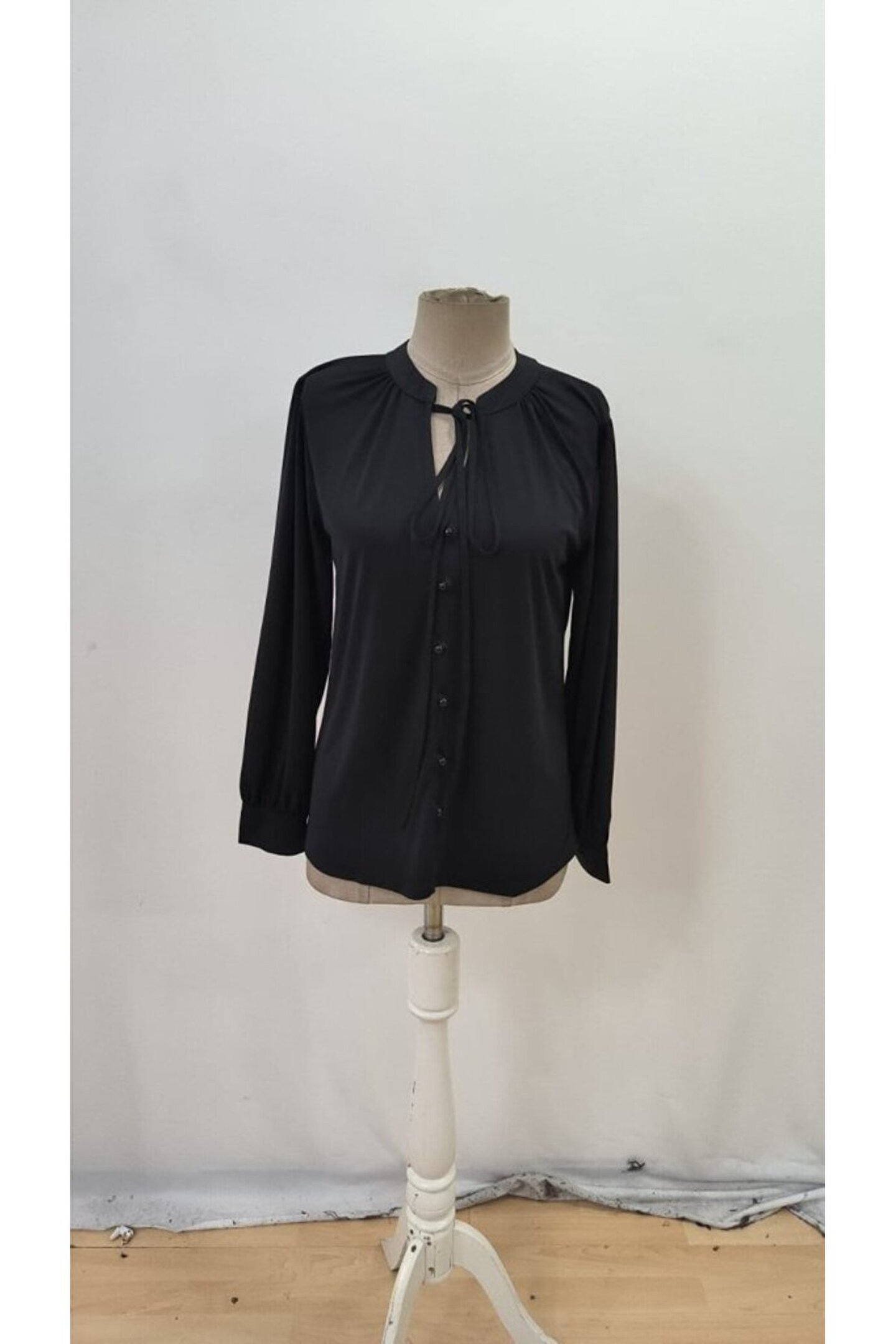 Kadın Uzun Kollu Yakalı Yakadan Bağcıklı Düğmeli Sandy Bluz