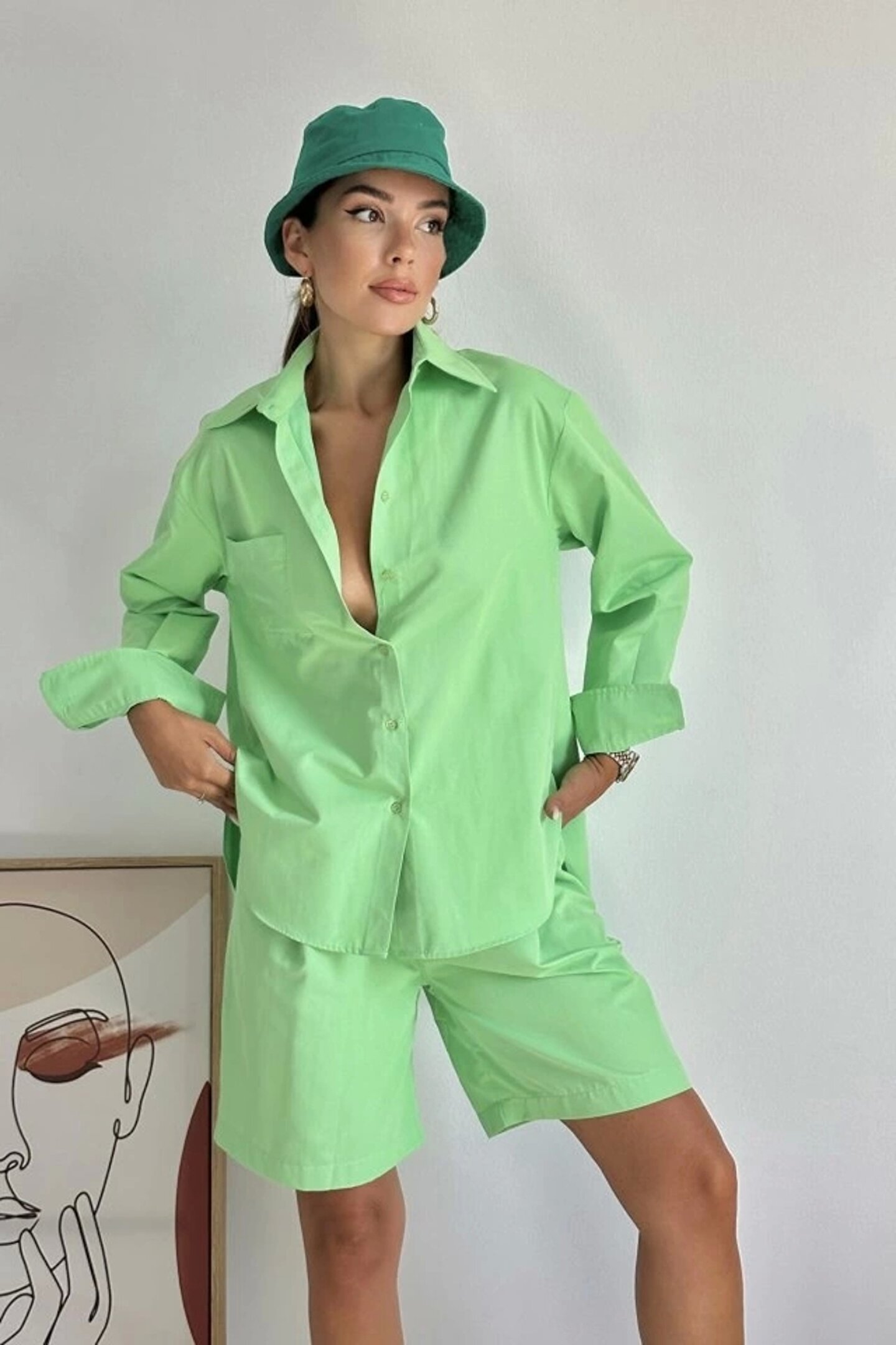 MAREANDPANDA Fıstık Yeşili Önü Cepli Gömlek Ve Şort Takım