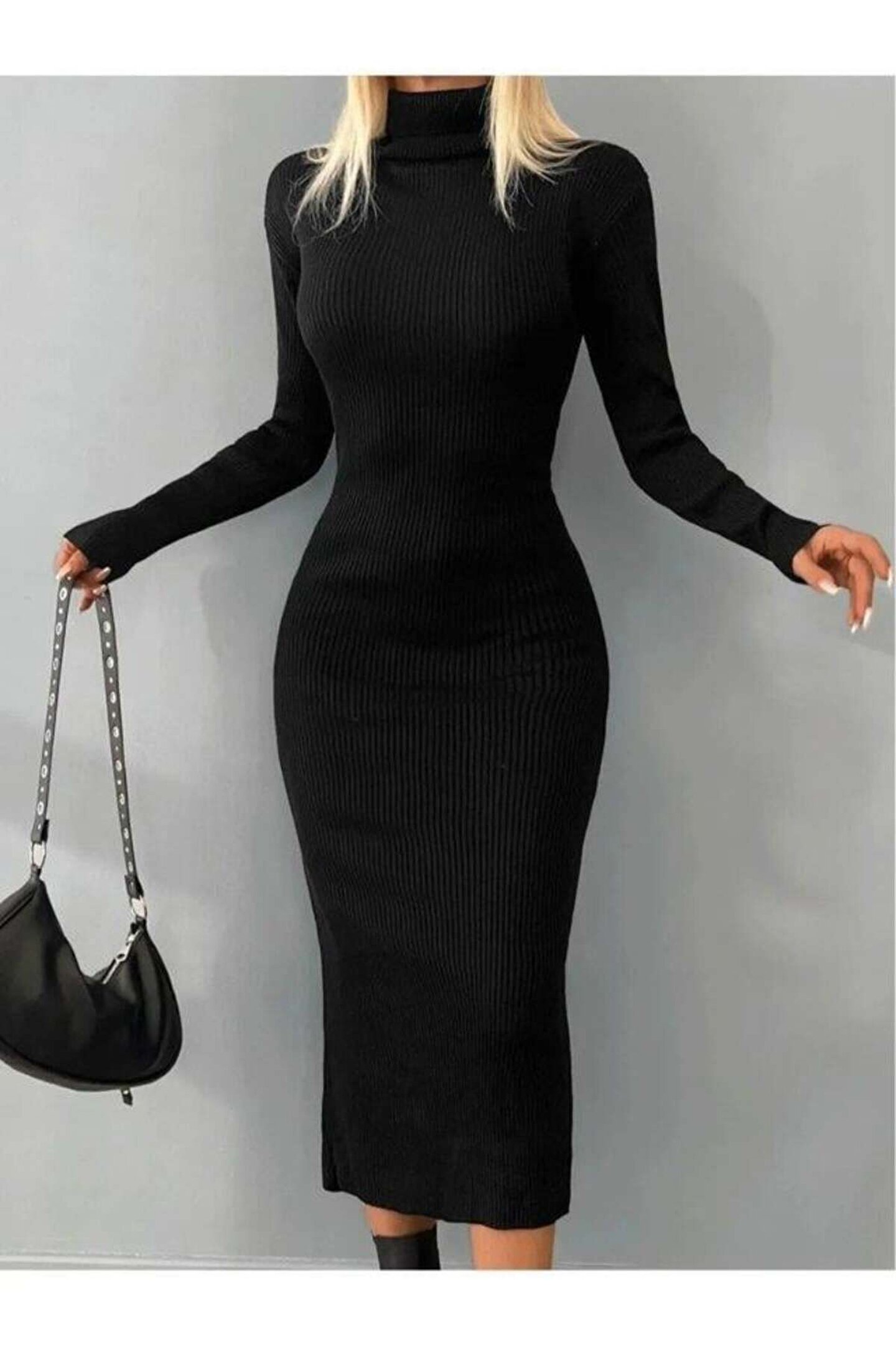 Kadın Balıkçı Yaka Fitilli Triko Kalem Elbise