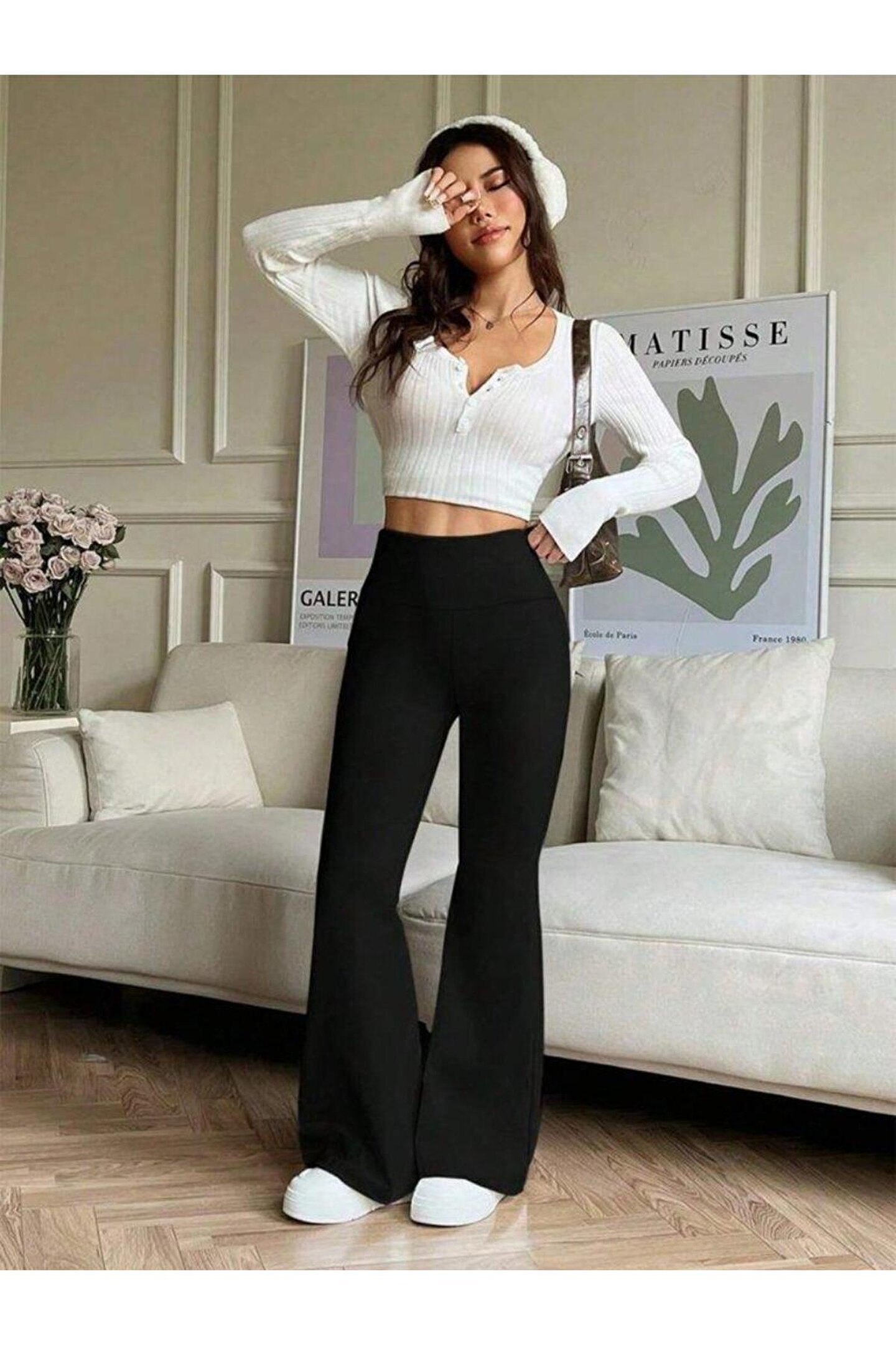 Kadın Yüksek Bel Ispanyol Paçalı Pantolon Tayt