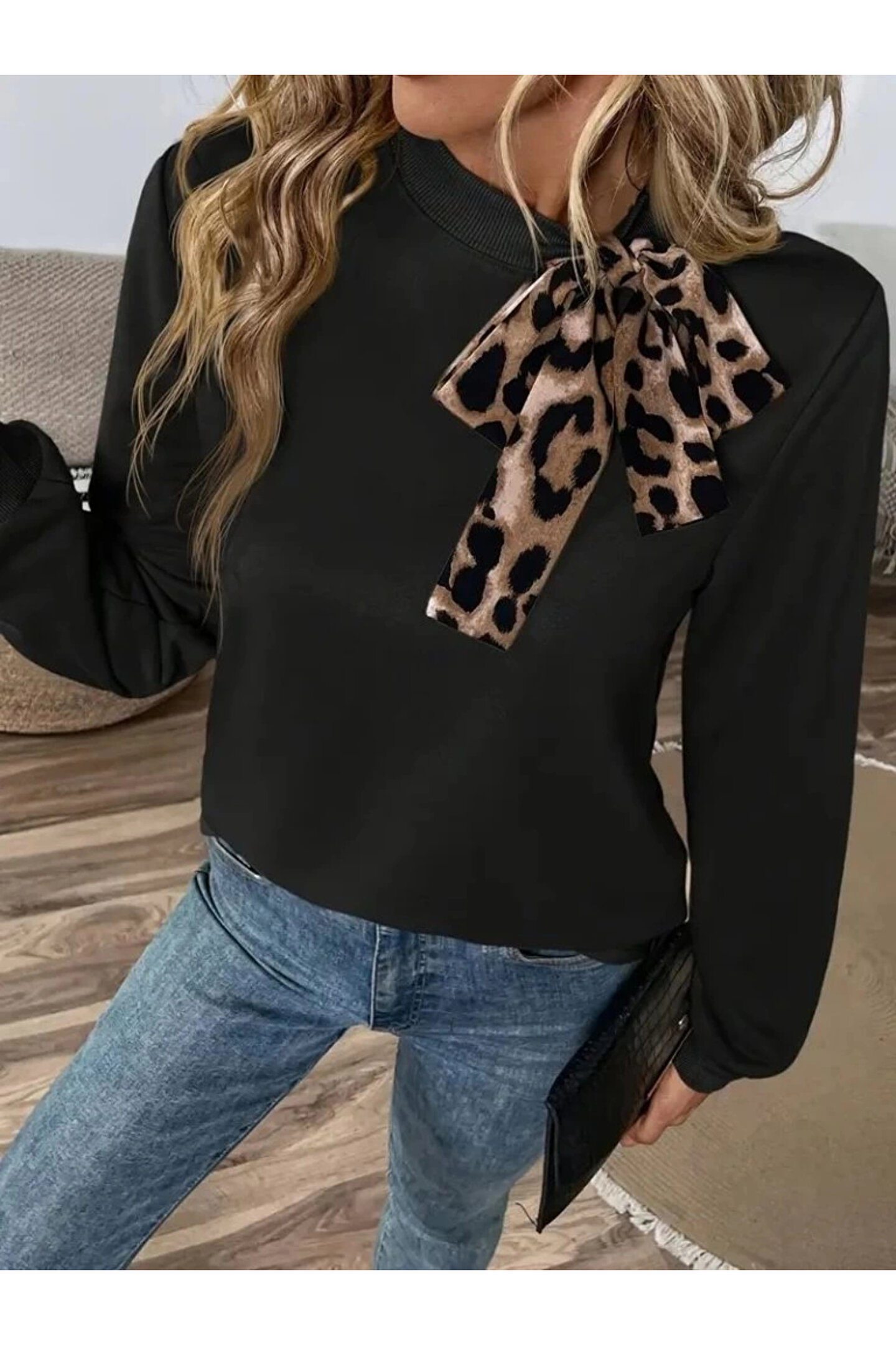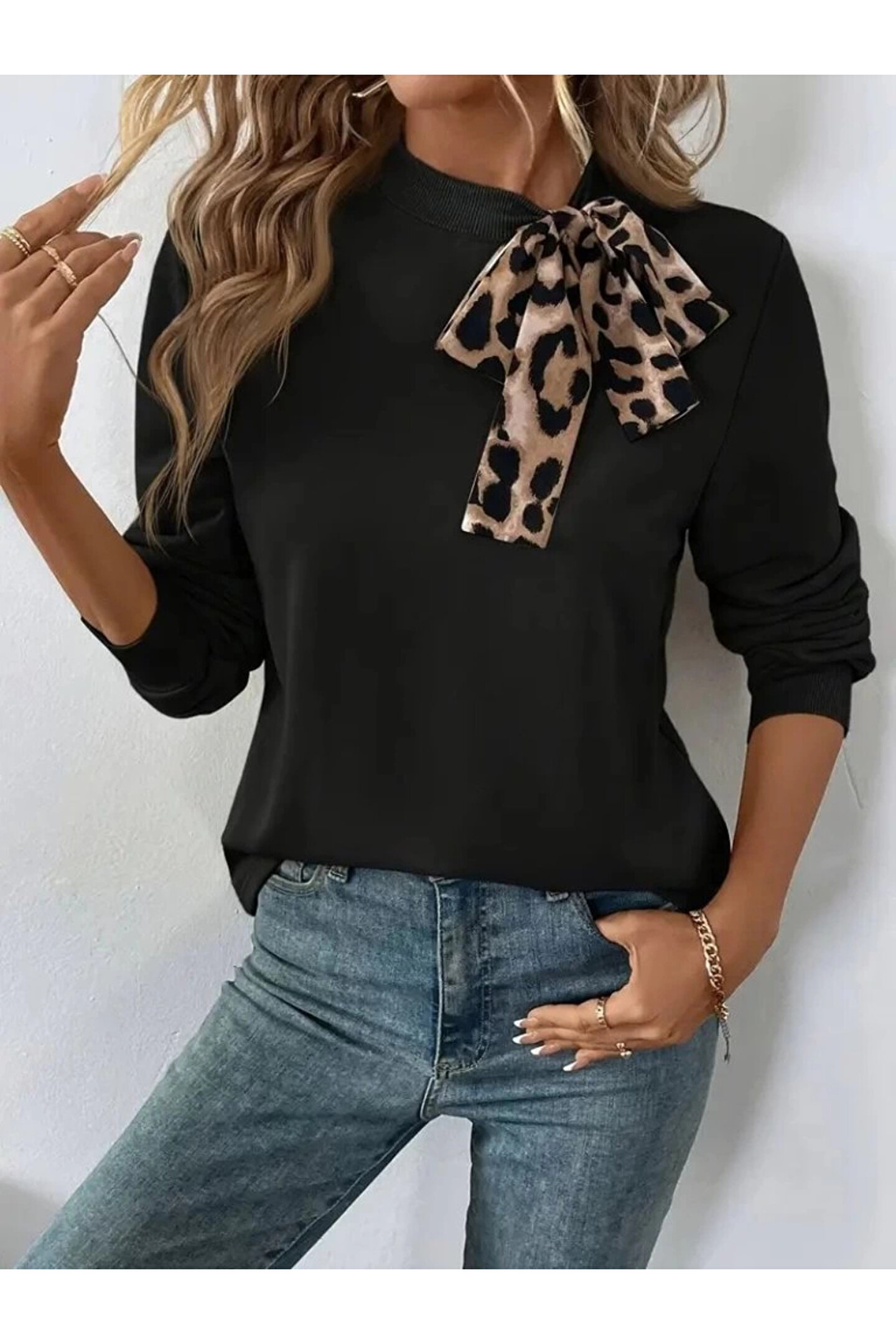 Kadın Uzun Kollu Yakadan Bağlamalı Viskon Iki Iplik Bluz