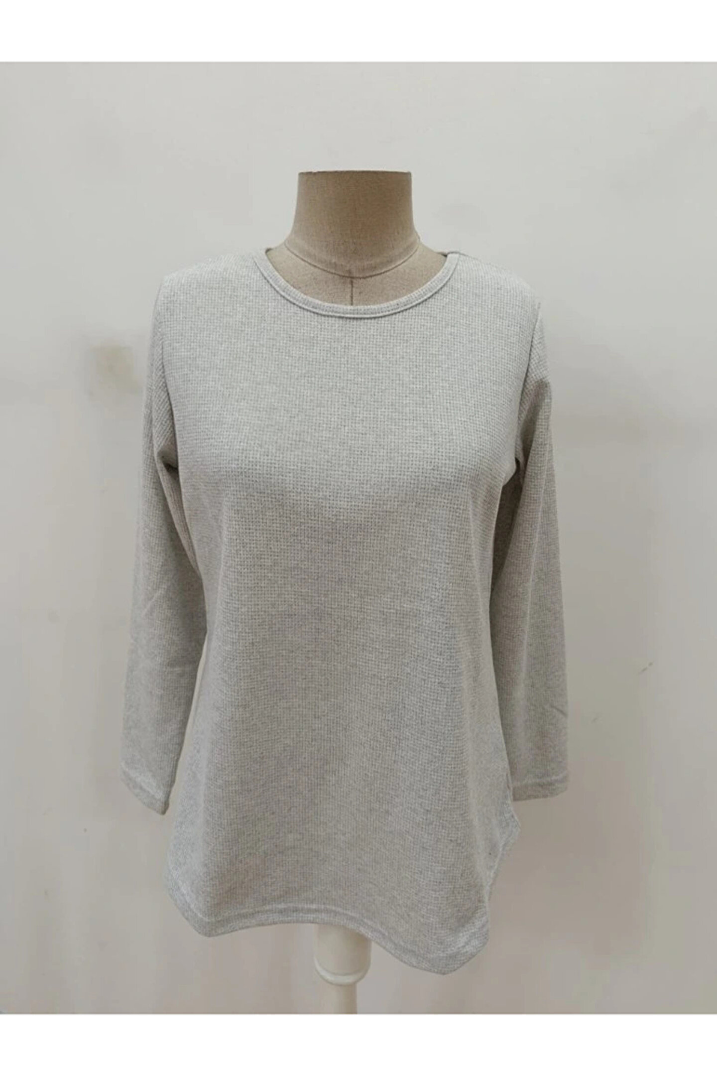 MAREANDPANDA MDB Kadın Uzun Kollu Yuvarlak Yaka Arkadan Düğmeli Waffle Bluz
