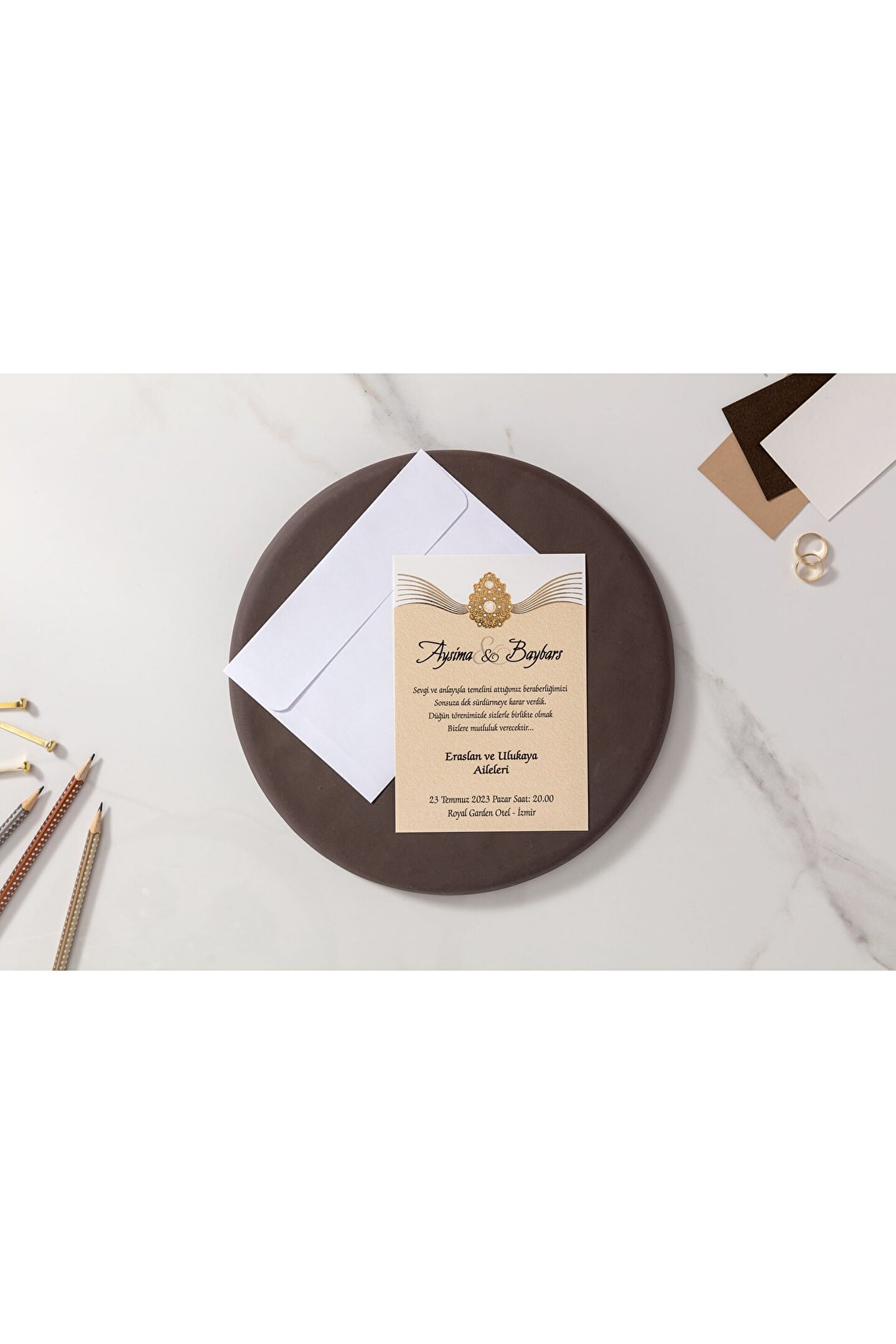 Fiyat, 1 Kutu için geçerlidir. ; Bir kutuda 100 adet davetiye bulunmaktadır. ; Davetiye aksesuarları ve zarf fiyata dahildir. ; Baskı ücreti dahil değildir. ; Katlama ve birleştirme işlemleri müşteri tarafından yapılır.;