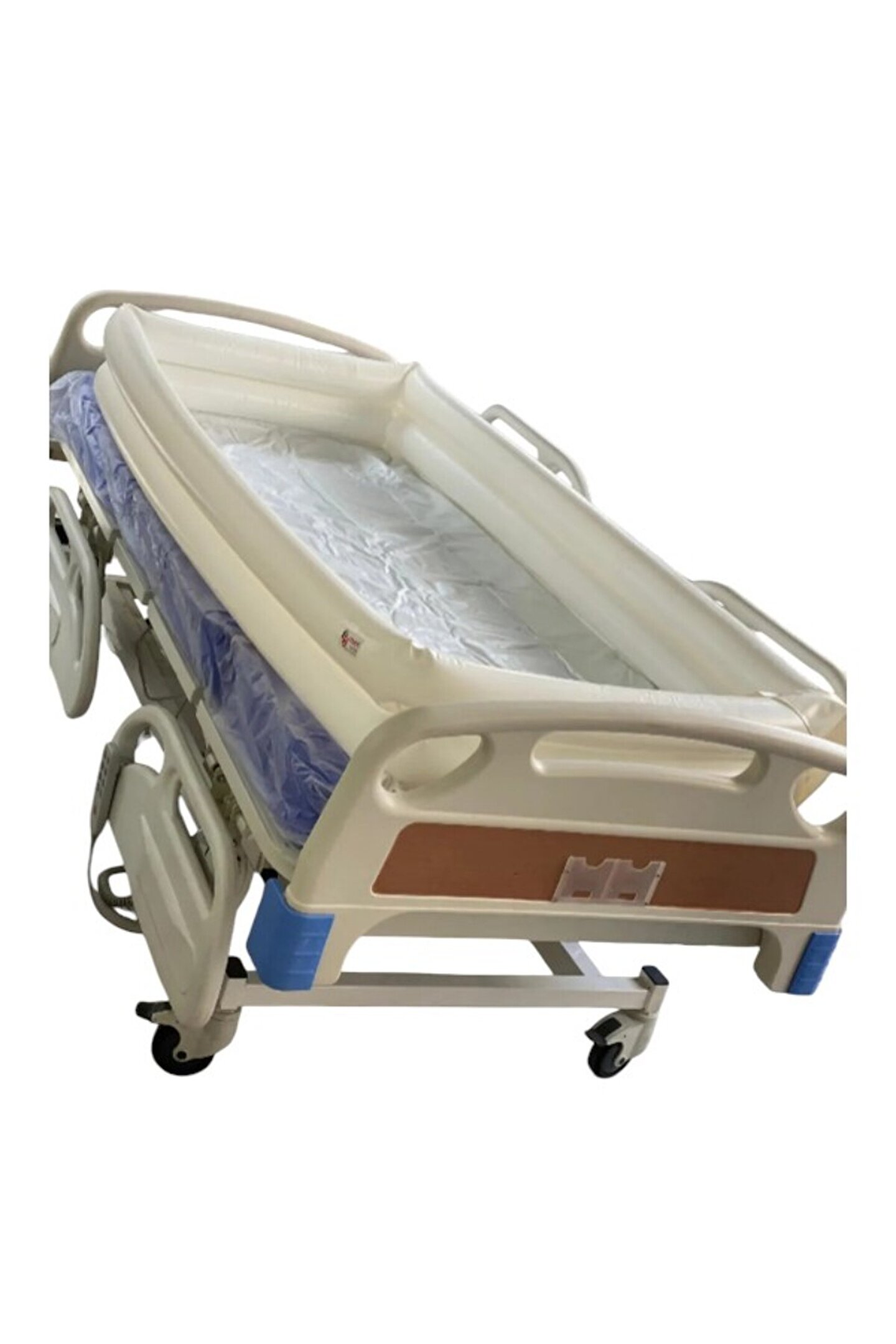 Küvete dönüşebilen hasta yıkama havuzumuzda bulunan setler; Elektrikli motor ünitesi, sprey duş, valf sistemli tahliye ve şişirme ucu.