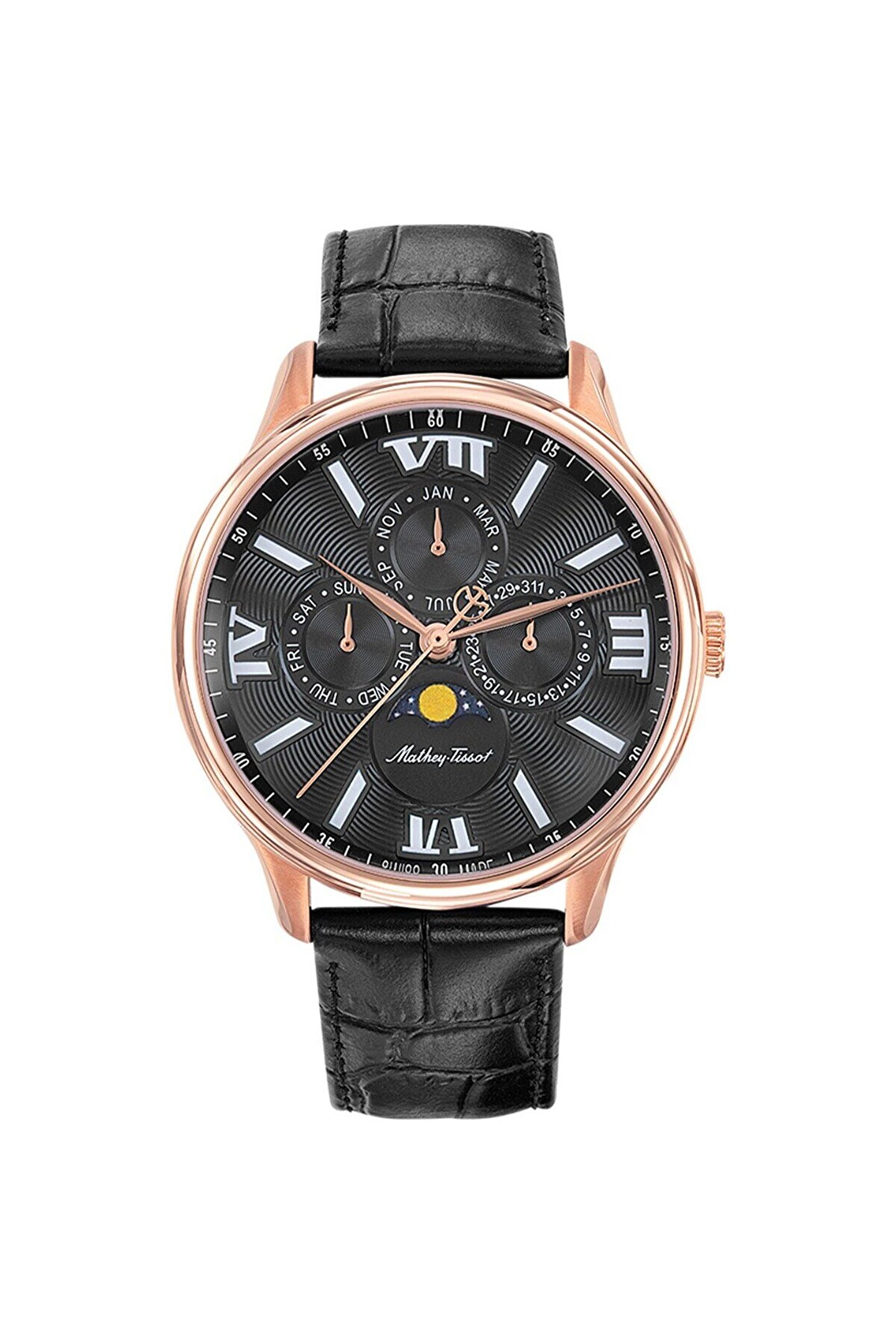 KASA: ÇAP 42 mm KASA KALINLIĞI 11 mm SU DİRENCİ 5 ATM (50 metre, 165 fit) KASA: ARKA PLAKA Paslanmaz Çelik 316L KASA: MALZEME Paslanmaz Çelik 316L CAM Safir Kaplamalı BİLEZİK: RENK Siyah BİLEZİK: TOKA Kelebek Toka BİLEZİK: GENİŞLİK 20 mm BİLEZİK: MALZEME Deri KADRAN: RENK Siyah KADRAN: MALZEME Pirinç CİNSİYET Erkek Ay Durumu, Gün, Tarih ve Ay MAKİNA: İSİM RONDA 706.3 KÖKEN İsviçre yapımı MAKİNA: TİP Kuvars