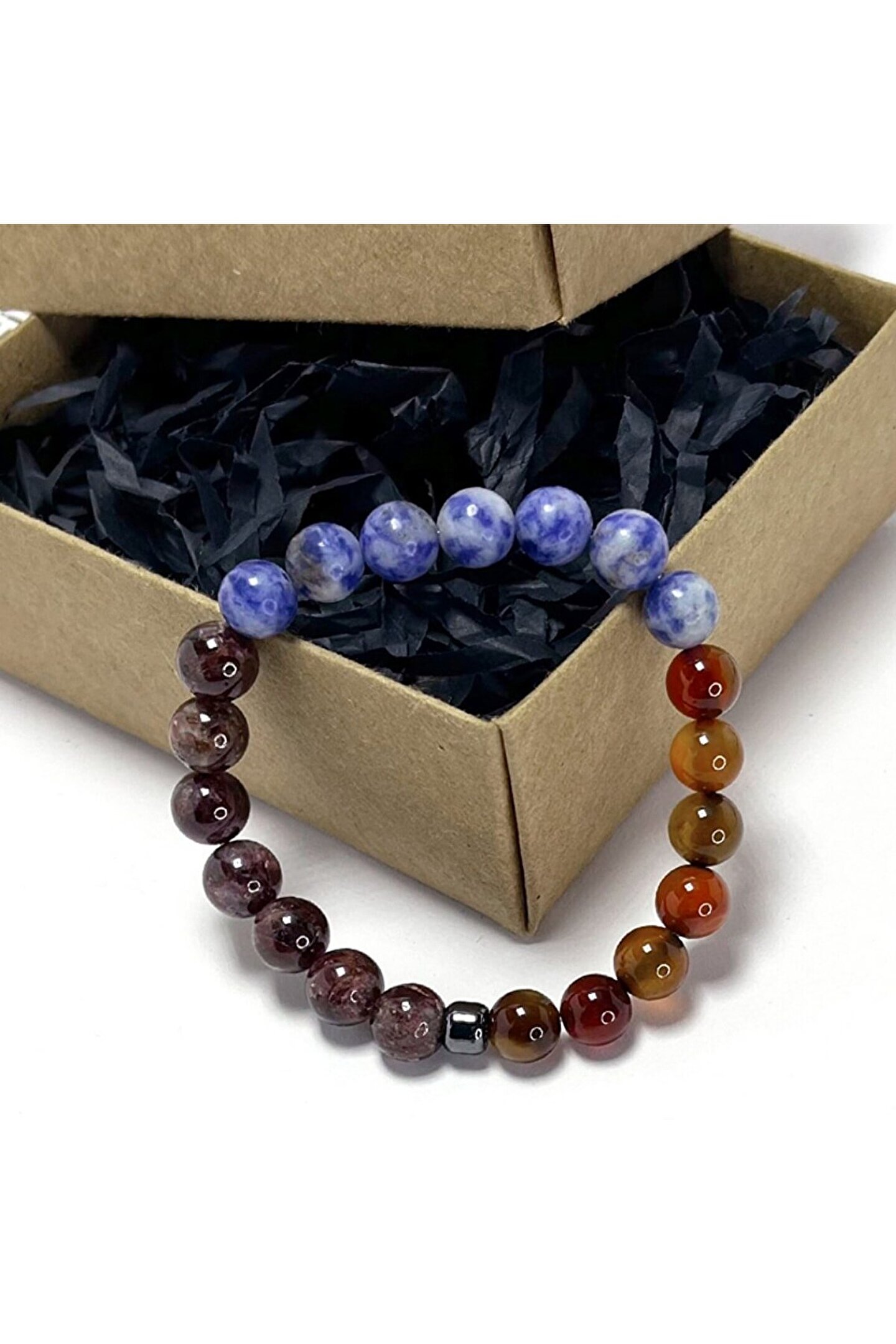 Özel Tasarım Doğal Taş Bileklik Ürünlerimiz gerçek doğal taştır. Sertifikasıyla birlikte gönderilir. Bileklikte Kullanılan Taşlar Akik Sodalit Lal Garnet AKİK Akik taşı, kuvars mineralinin bir türüdür ve çeşitli renklerde olabilir. En yaygın renkleri kahverengi, sarı, kırmızı ve yeşildir. Akik taşı, dünyanın birçok yerinde çıkarılmaktadır. En büyük akik madenleri Brezilya, Rusya, Hindistan, Meksika, Çin ve ABD'de bulunmaktadır. Türkiye'de de Balıkesir, Yozgat ve Ordu'da akik yatakları bulunmaktadır. Akik taşı, yüzyıllardır mücevher olarak kullanılmaktadır. Ayrıca, akik taşının şifa verici özellikleri olduğuna inanılmaktadır. Akik taşı, stresi azaltmaya, uyku kalitesini iyileştirmeye ve baş ağrılarını hafifletmeye yardımcı olduğu söylenmektedir.