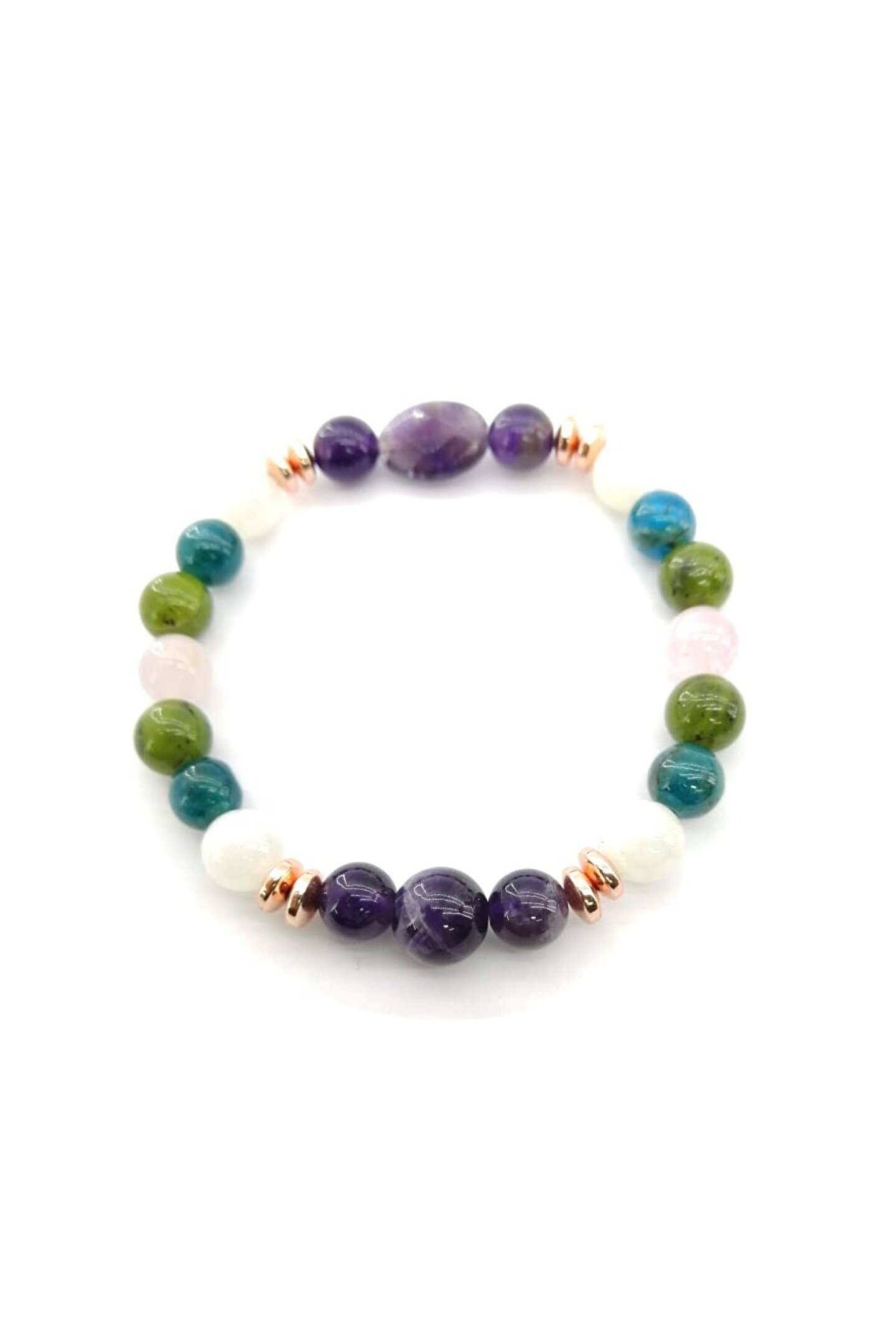 Mavera Doğaltaş Ametist, Hematit, Yeşim, Ay Taşı, Apatit Doğal Taş Bileklik 8 mm