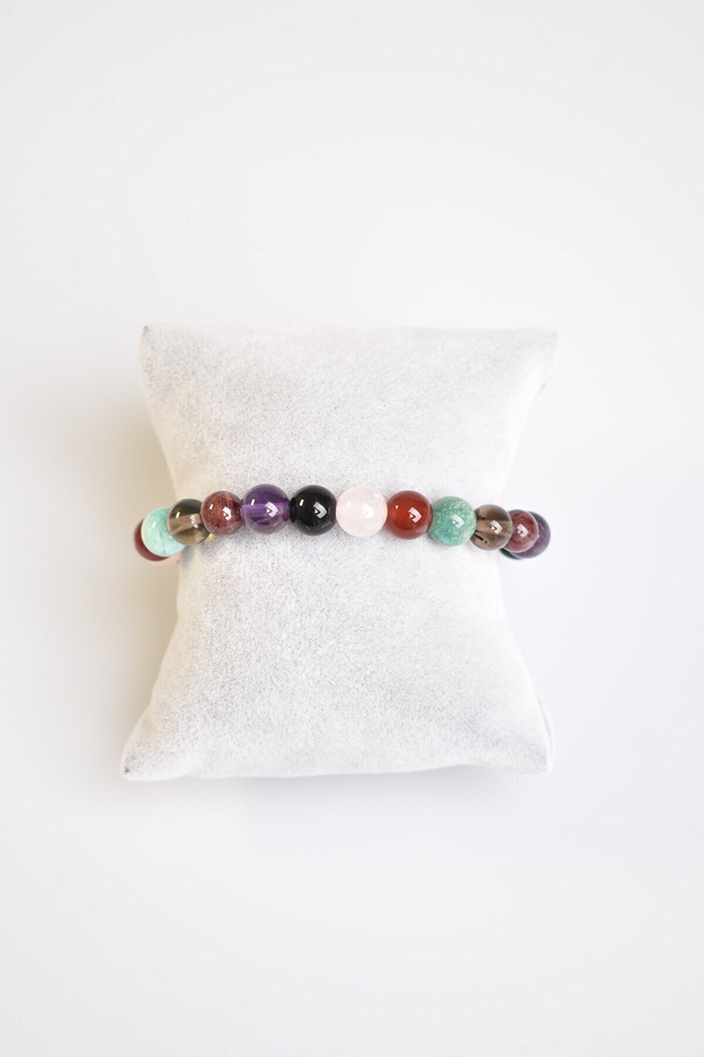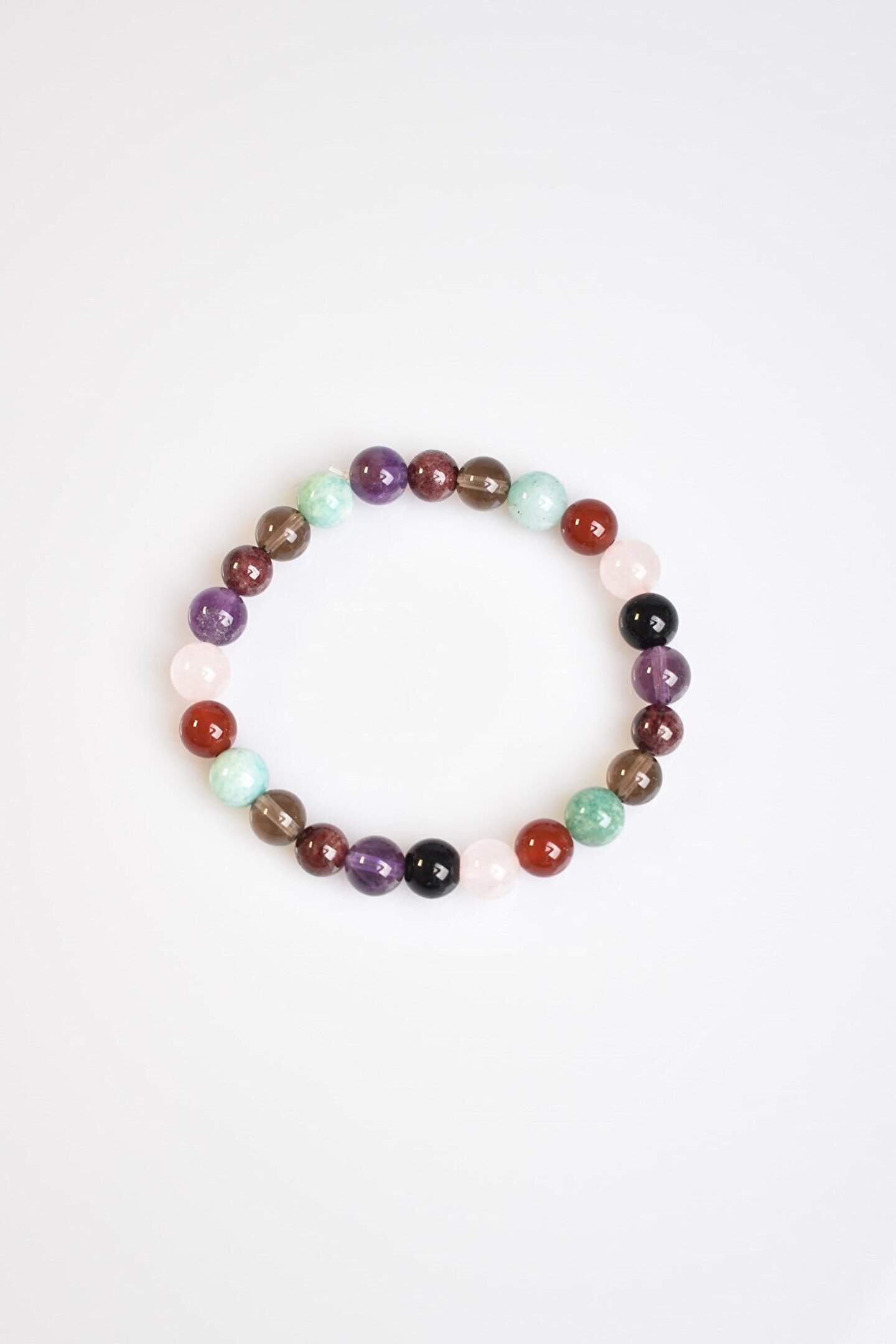 Başak Burcu Doğal Taş Bilekli 8 mm Ametist Amazonit Dumanlı Kuvars Akik Pembe Kuvars Obsidyen