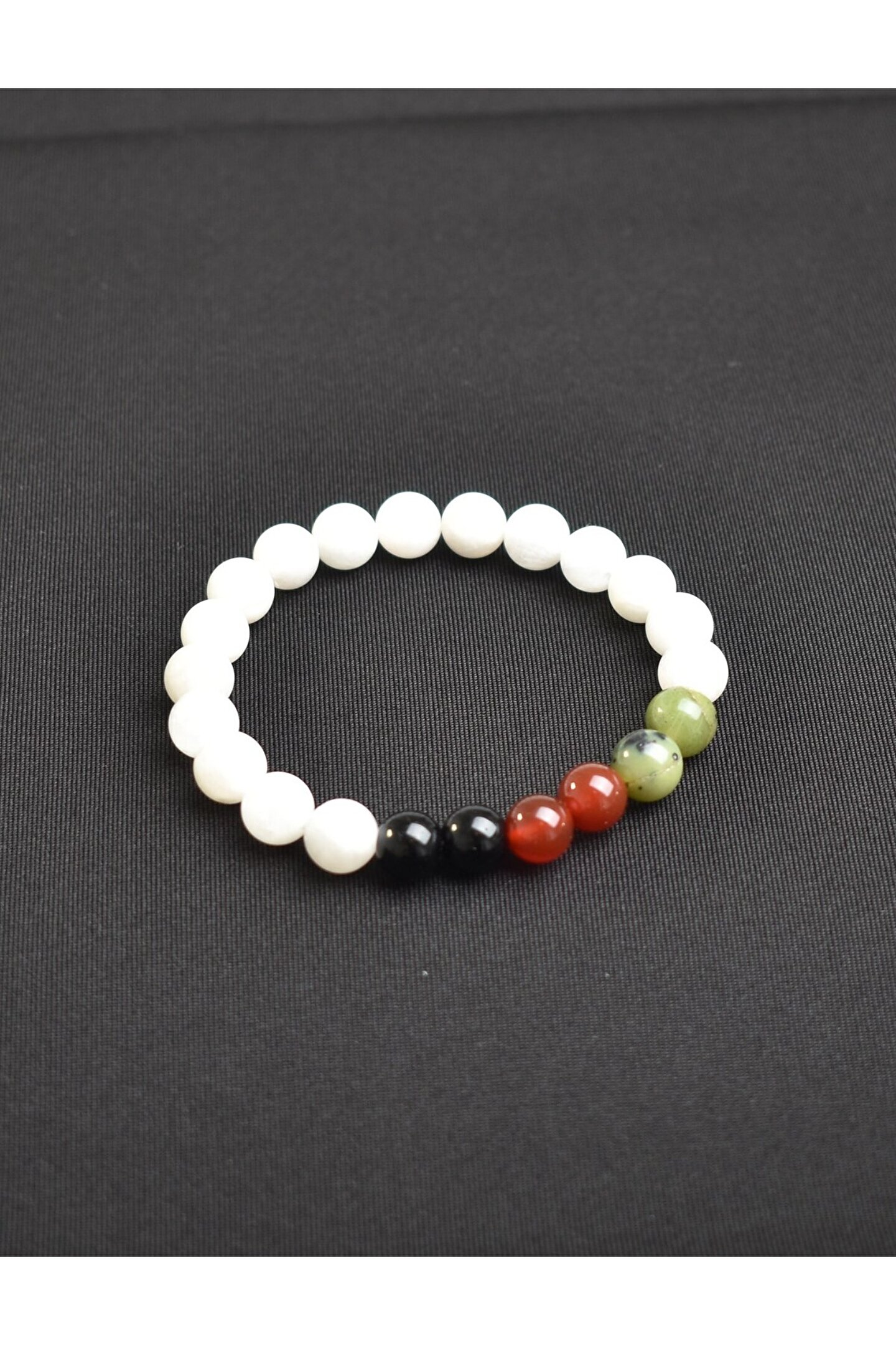 Filistin'in eşsiz güzelliğini bileğinizde taşımaya hazır olun! Bu özel bilezik, yeşim, akik, obsidyen ve ay taşı gibi doğal taşların benzersiz bir kombinasyonunu içerir; Doğal taş kullanımı sayesinde her bilezik eşsizdir ve doğanın saf güzelliğini yansıtır; Bu bilezik, hem günlük kullanım hem de özel günlerinizde şıklığınızı tamamlayacak zarif bir aksesuardır; ;;