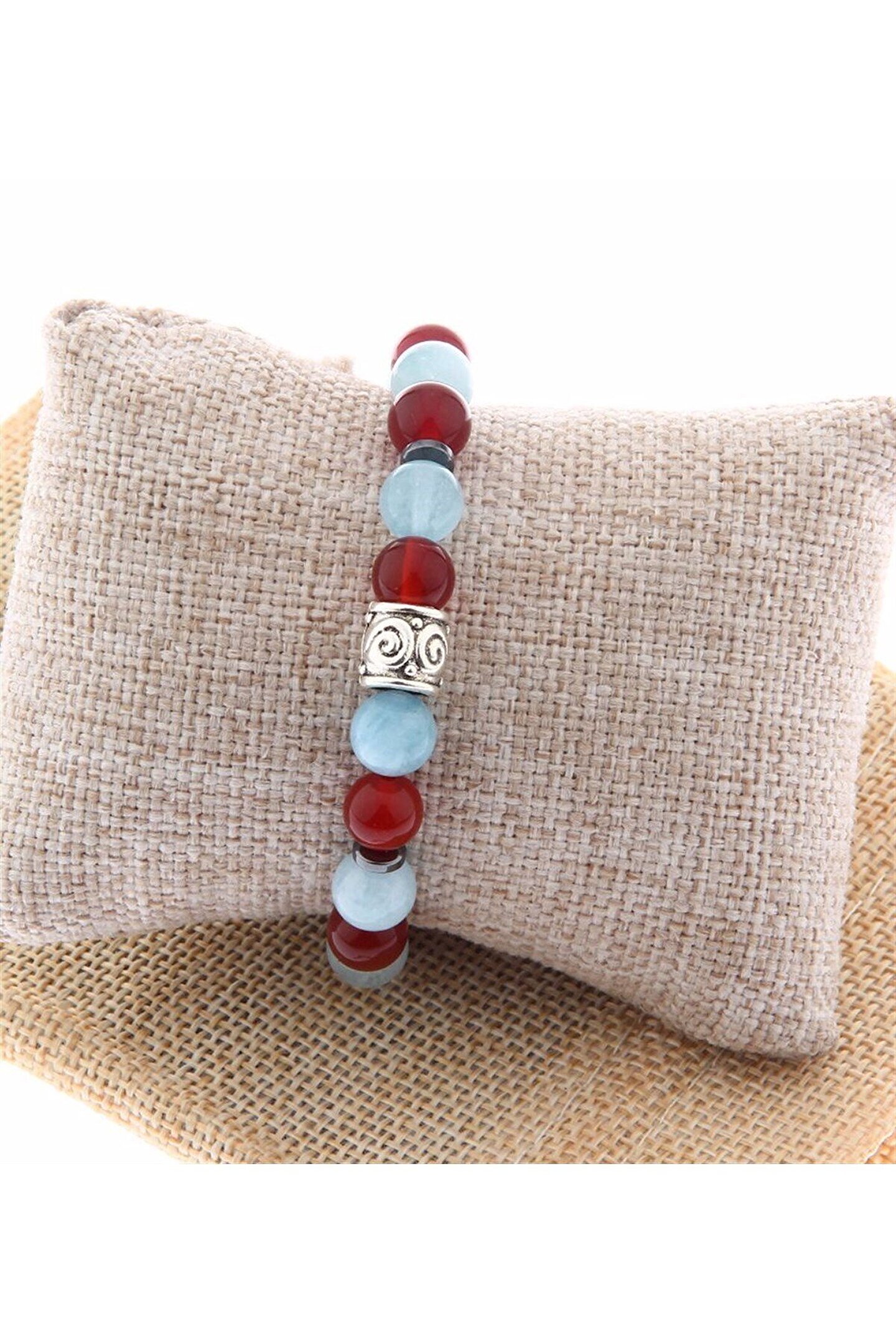 Özel Tasarım Doğal Taş Bileklik Ürünlerimiz gerçek doğal taştır. Sertifikasıyla birlikte gönderilir. Bileklikte Kullanılan Taşlar: Hematit, Akik, Aquamarin Hematit Taşı Neden Tercih Ediliyor Stresi azalttığı söylenir. Hafızayı kuvvetlendirmesi amacıyla kullanılır. Eklem romatizmalarına karşı etkili olduğu söylenir. Kişinin kendi ile barışık olmasını sağladığına inanılır Akik Taşı Neden Tercih Ediliyor Genel sağlık taşı olarak bilinir. Vücuttaki fazla veya negatif enerjiyi boşalttığı ve sakinleştirdiği söylenir. Vücudun kendini yorgun ve bitkin hissettiği zamanlarda toparlamasına yardımcı olduğu söylenir. Kişinin sosyalleşmesine ve çevreye uyum sağlamasına yardımcı olduğuna inanılmaktadır. Korkuları yenmeye, cesareti artırmaya yardımcı olduğu söylenir. Akıl ve mantık gücünü geliştirdiğine inanıldığı için sanatçılar tarafından çokça tercih edilmektedir Akuamarin Taşı Neden Tercih Ediliyor İyimserlik ve rahatlama sağladığı söylenir. Bronşit ve astım rahatsızlıklarına iyi gelmesi amaçlarıyla kullanılır.