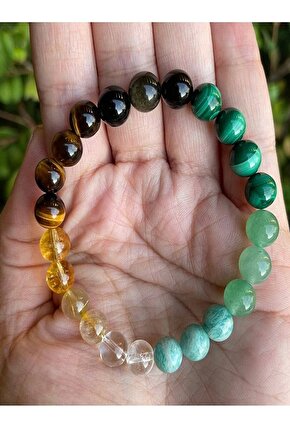 Özel Tasarım Doğal Taş Bileklik Ürünlerimiz gerçek doğal taştır. ; Sertifikasıyla birlikte gönderilir. ; Bileklikte Kullanılan Taşlar Kaplan Gözü, Dönüşümlü Sitrin, Necef Kuvars, Amazonit, Aventurin, Malakit Amazonit taşı, dünya çapında birçok yerde çıkarılmaktadır. ; En büyük amazonit madenleri Rusya, ABD, Kanada, Çin, Meksika, Brezilya, Madagaskar ve Zambiya'da bulunmaktadır. ; Türkiye'de de Balıkesir, Ordu ve Yozgat'ta amazonit yatakları bulunmaktadır. ; Amazonit taşı, feldispat mineralidir ve yeşil-mavi renklidir. ; Yeşil-mavi rengi, amazonite rengini veren demir minerali içeriğinden kaynaklanmaktadır. ; Amazonit, genellikle prizmatik kristaller halinde bulunur. ; Amazonit taşı, yüzyıllardır mücevher olarak kullanılmaktadır. ; Ayrıca, amazonit taşının şifa verici özellikleri olduğuna inanılmaktadır. ; Amazonit taşı, stresi azaltmaya, uyku kalitesini iyileştirmeye ve baş ağrılarını hafifletmeye yardımcı olduğu söylenmektedir. ; SİTRİN Sitrin taşı, dünyadaki birçok yerde çıkarılmaktadır. ; En büyük sitrin madenleri Brezilya, Rusya, Madagaskar, İspanya, Fransa, İtalya ve Birleşik Devletler'de bulunmaktadır. ; Türkiye'de de Balıkesir, Ordu ve Yozgat'ta sitrin yatakları bulunmaktadır. ; Sitrin taşı, kuvars mineralinin bir türüdür ve sarı renklidir. ; Sarı rengi, sitrine rengini veren demir minerali içeriğinden kaynaklanmaktadır. ; Sitrin, genellikle prizmatik kristaller halinde bulunur. ; Sitrin taşı, yüzyıllardır mücevher olarak kullanılmaktadır. ; Ayrıca, sitrin taşının şifa verici özellikleri olduğuna inanılmaktadır. ; Sitrin taşı, stresi azaltmaya, uyku kalitesini iyileştirmeye ve baş ağrılarını hafifletmeye yardımcı olduğu söylenmektedir.;