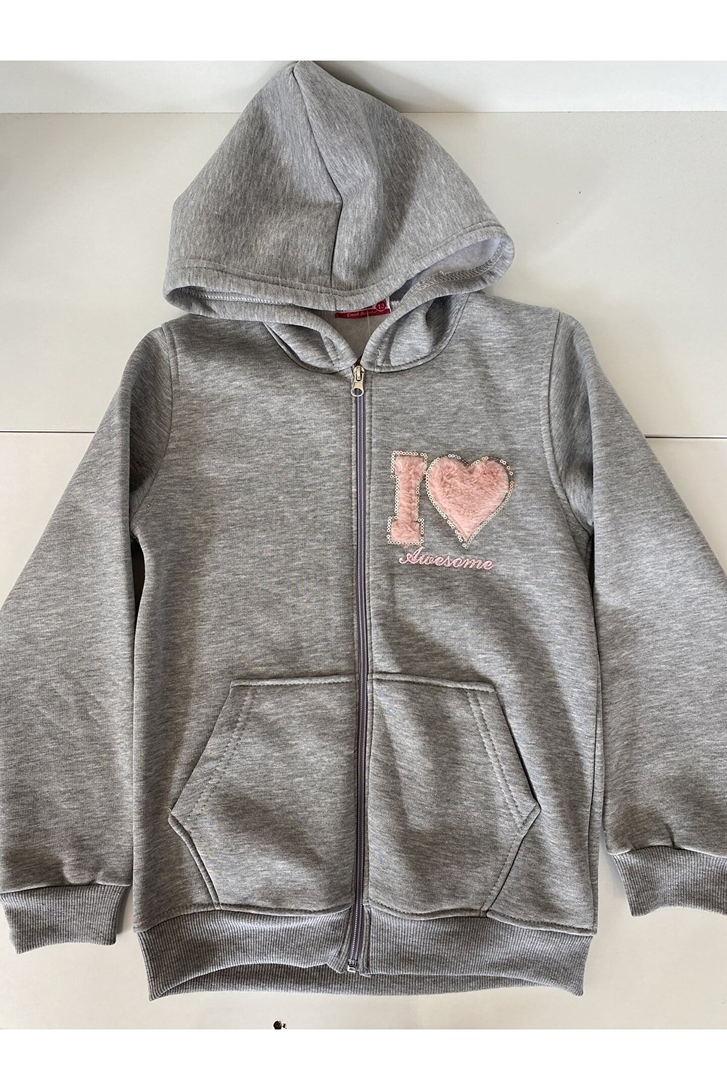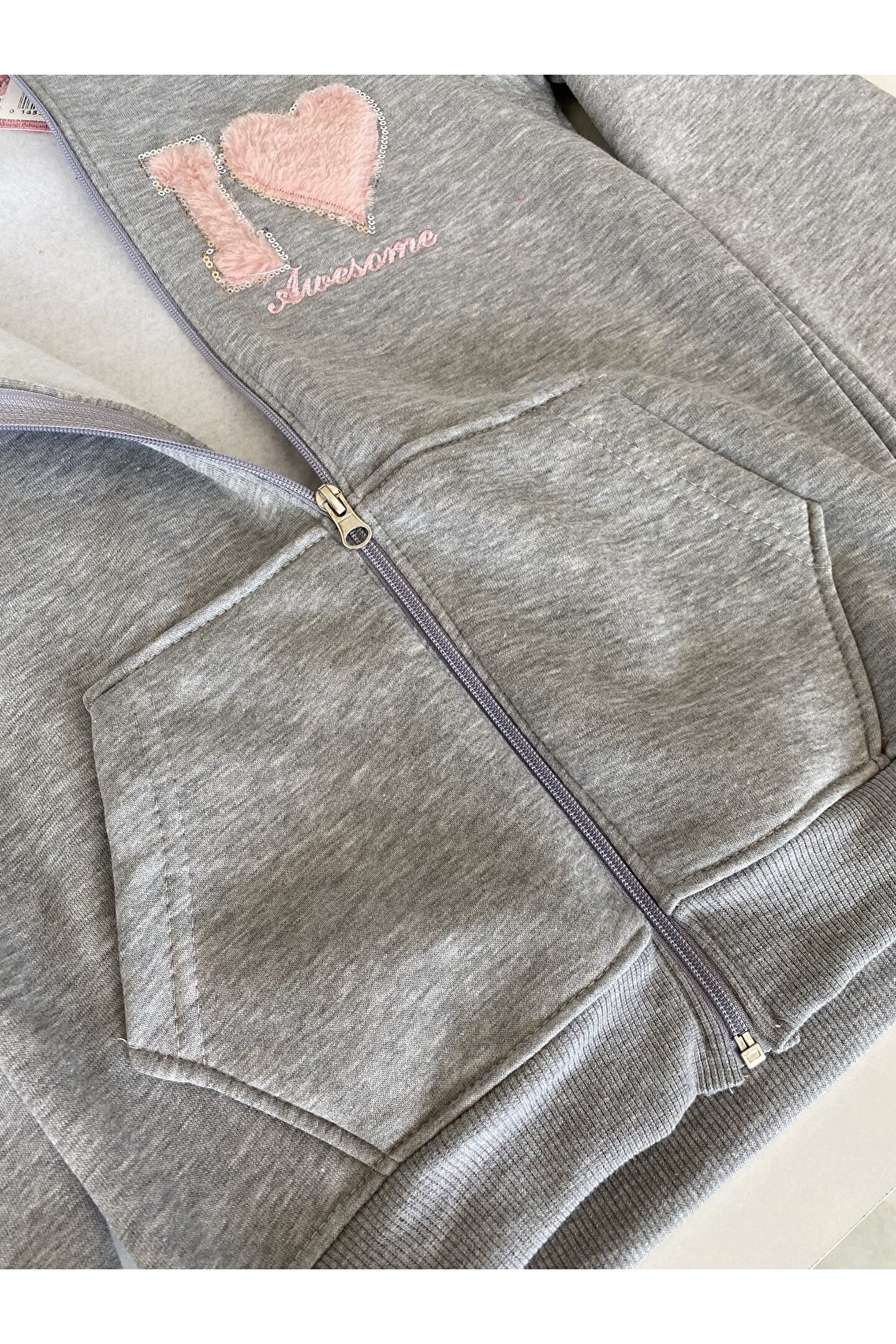 Mavera Gri Baskılı Cepli Fermuarlı Kapşonlu Ceket