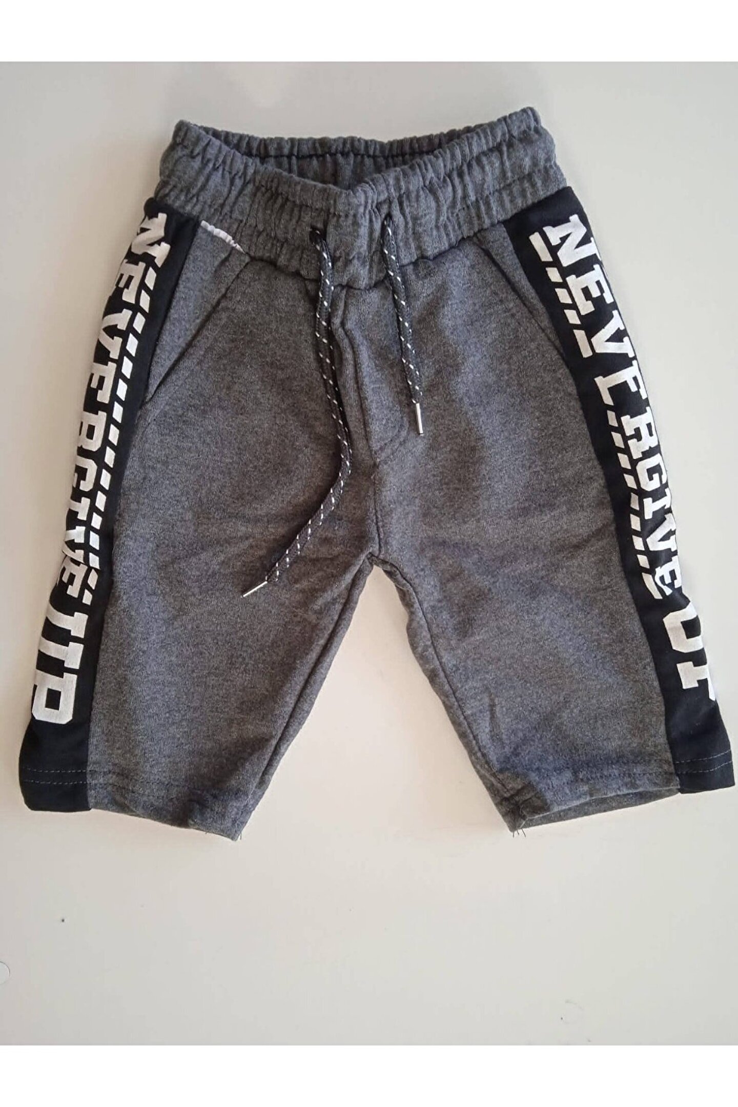Mavera Gri Cepli Beli Lastikli Kenarı Baskılı Şort