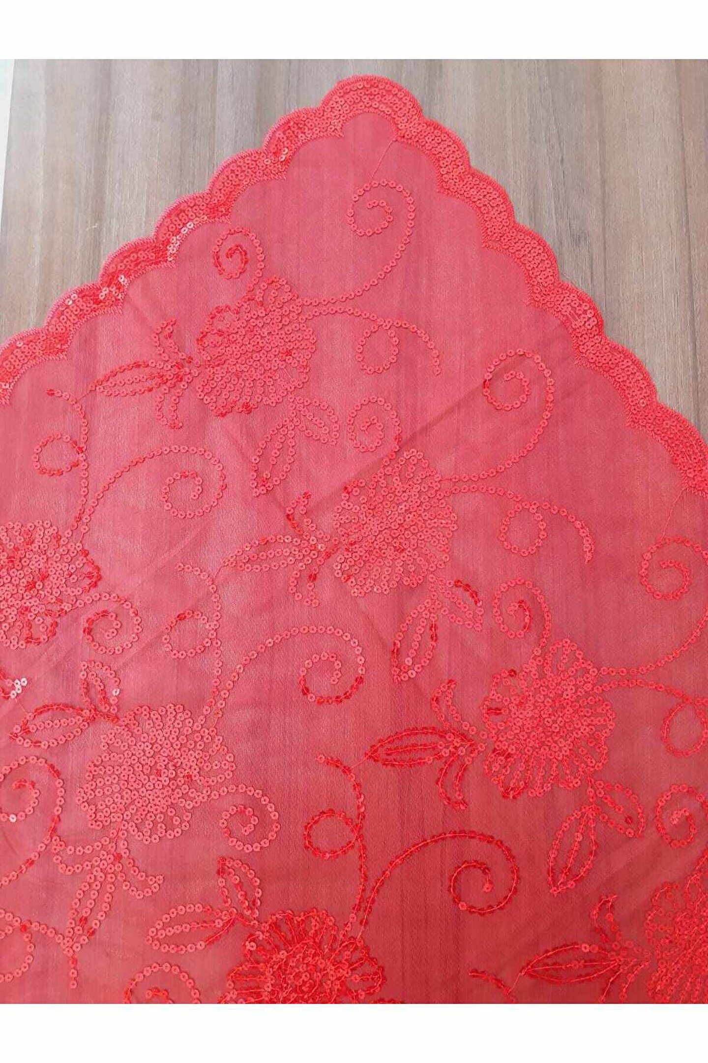 - Zarif tül modeli, gelinlerin şıklığını ön plana çıkarır ve düğün gününde göz alıcı bir görünüm sağlar; - Kırmızı renk seçeneği ile gelinlerin enerjisini ve tutkusunu yansıtır, özel günlerinde kendilerini daha özel hissetmelerini sağlar; - Pullu detaylar, gelin duvağına sofistike bir dokunuş katarak, zarafeti ve zarafeti simgeler;