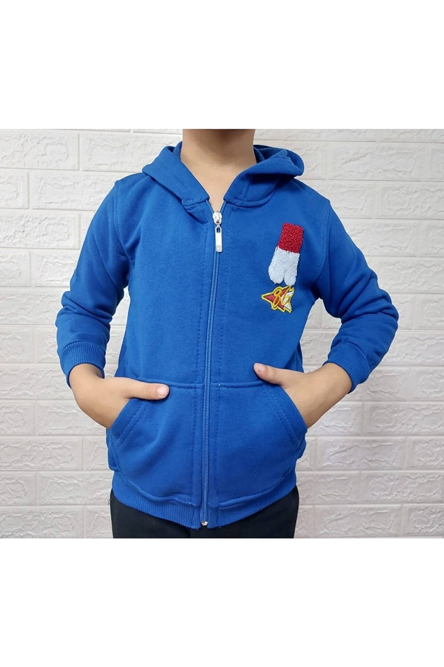Rahat hareket etme imkanı sağlayan lastikli bel yapısıyla çocukların günlük aktivitelerinde konforlu bir deneyim sunar.; Göz alıcı mavi baskılı deseniyle dikkat çekici bir tarz yaratır ve çocukların enerjisini yansıtacak şekilde tasarlanmıştır.; Pratik kullanım için tasarlanmış cepli yapısı, küçük eşyaların taşınmasını kolaylaştırır ve düzenli bir görünüm sağlar.; Standart boy kesimi ile farklı vücut tiplerine uyum sağlayarak rahat bir oturuş sunar.; Kapşonlu tasarımı, soğuk havalarda ekstra koruma sağlar ve şık bir görünüm kazandırır.;