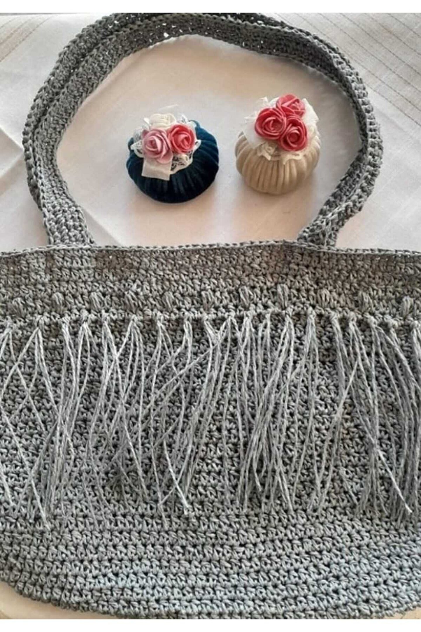 Zarif gri renk tonuyla dikkat çeken püskül detayları, hem şık hem de modern bir görünüm sunar.; Minimalist tasarımıyla her türlü kıyafetle kolayca uyum sağlar; günlük kullanımda rahatlıkla tercih edilebilir.; Düz deseni sayesinde sade ve zamansız bir tarz yaratır; farklı aksesuarlarla kombinlenebilirliği artırır.; Dayanıklı malzemeden üretilmiştir, uzun süreli kullanım için idealdir.; Kolay taşınabilir yapısıyla pratiklik sağlar; omuzda veya çapraz askısıyla konforlu bir kullanım imkanı sunar.; El örgüsü püskül detayları ile benzersiz ve özgün bir tasarıma sahiptir; kişisel tarzınıza sofistike bir dokunuş katar.;